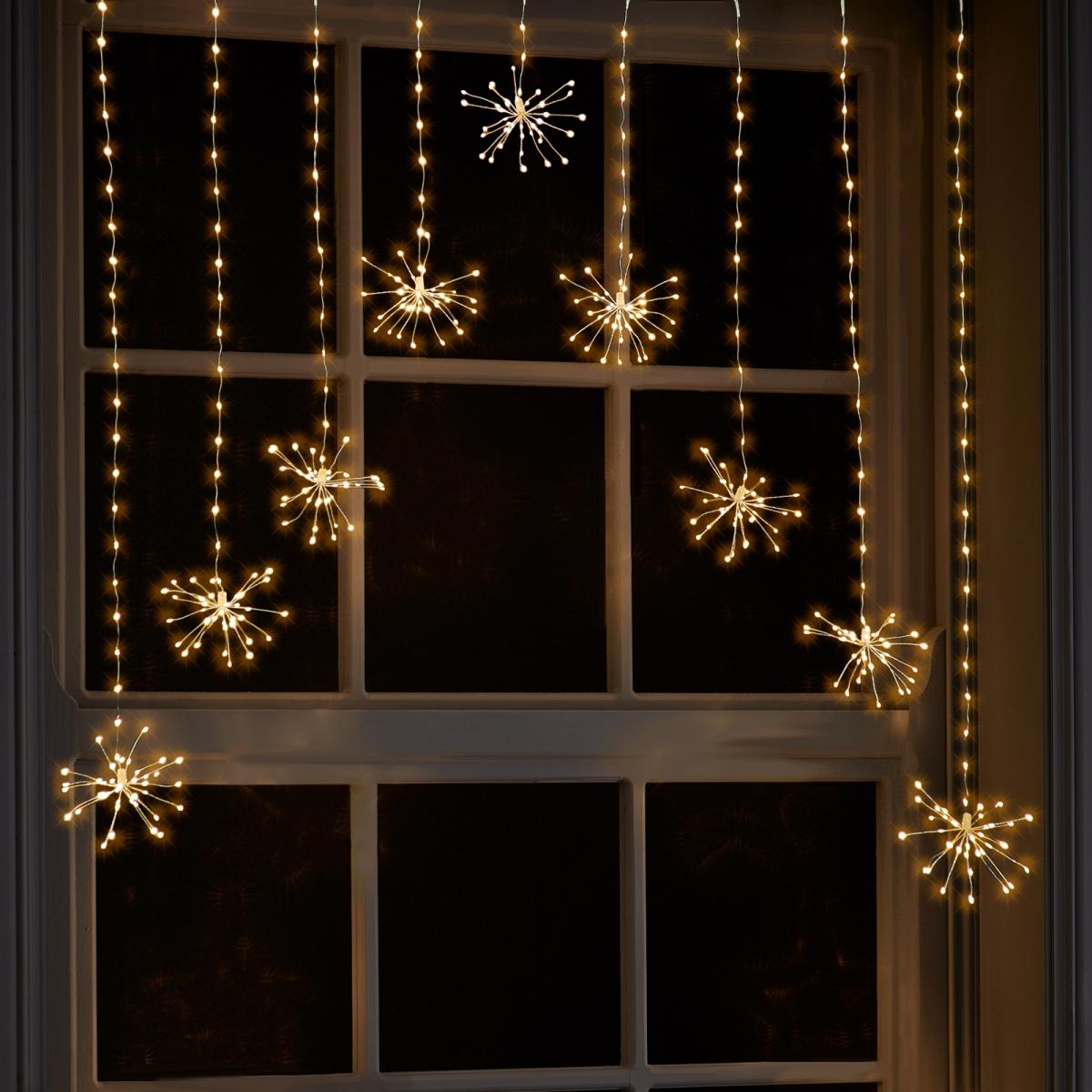 Our stunning 6 starburst warm white LED pinwire Christmas window light decorations will be the perfect addition to your display this year. Featuring a twinkling light mode, this beautifully designed lights are perfect to hang up in the window to spread Christmas cheer to passersby.