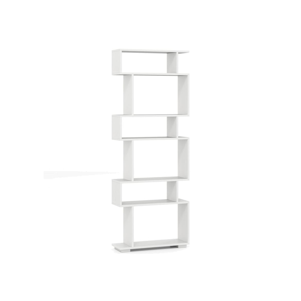 Boasting 6 storage shelves for efficient organization, this S-shaped bookshelf ensures functionality in your home. 2 anti-tipping kits provide stability and safety, while a unique geometric design adds sophistication and acts as a captivating focal point in any modern interior. Versatile in use, this storage unit is ideal for displaying collectibles, organizing books, or storing essentials in any room. The bookcase also includes well-made details like a smooth surface for effortless cleaning, screw hole covers for a neat look, and protective foot pads that prevent floor scratches.