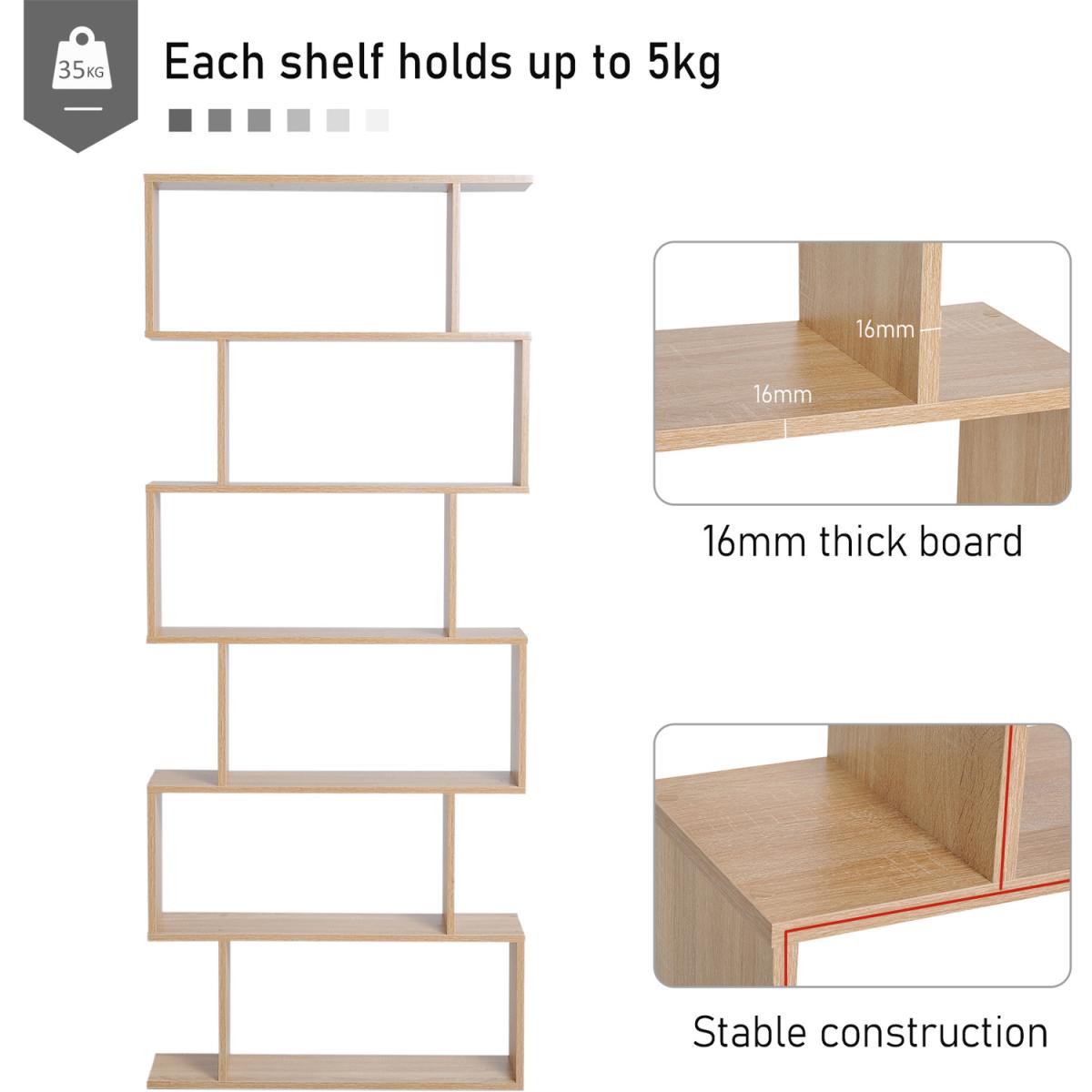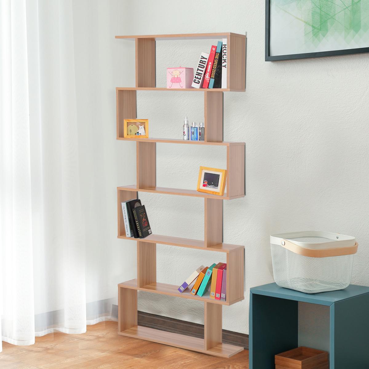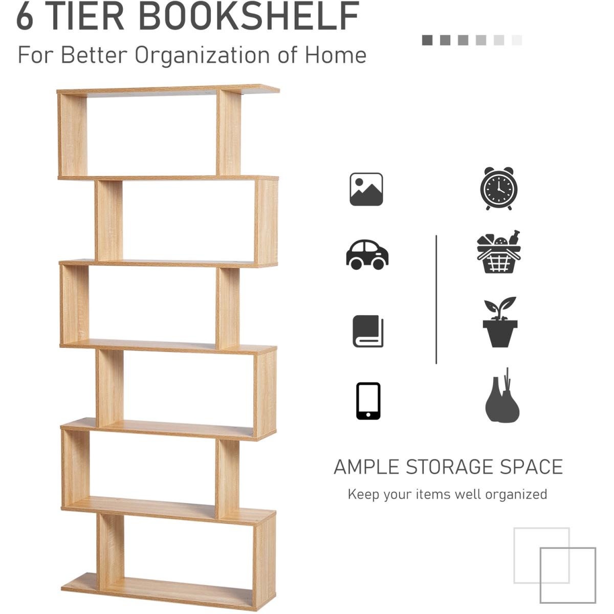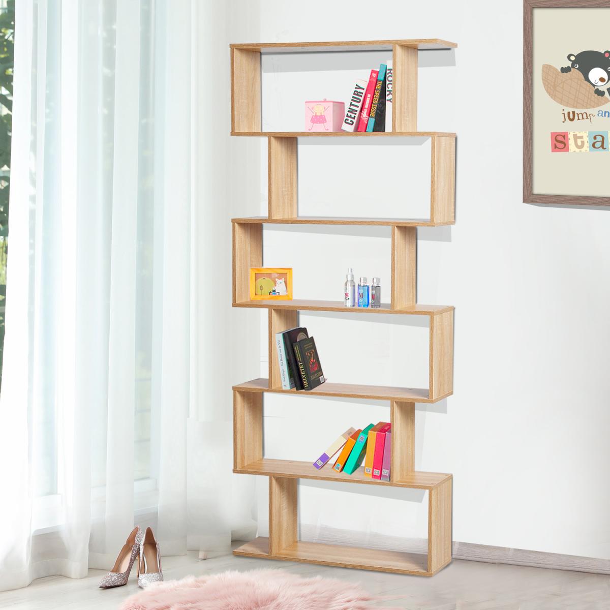 6-Tier Storage Shelf Modern S-Shape Design - Oak Colour
