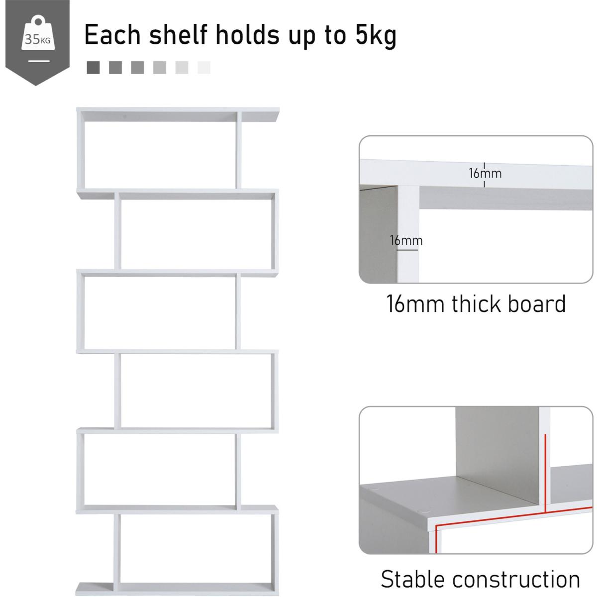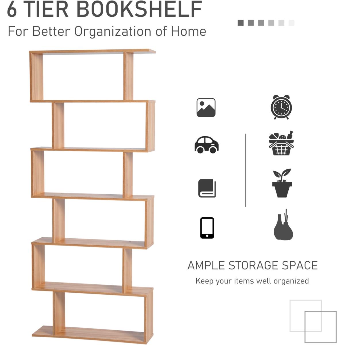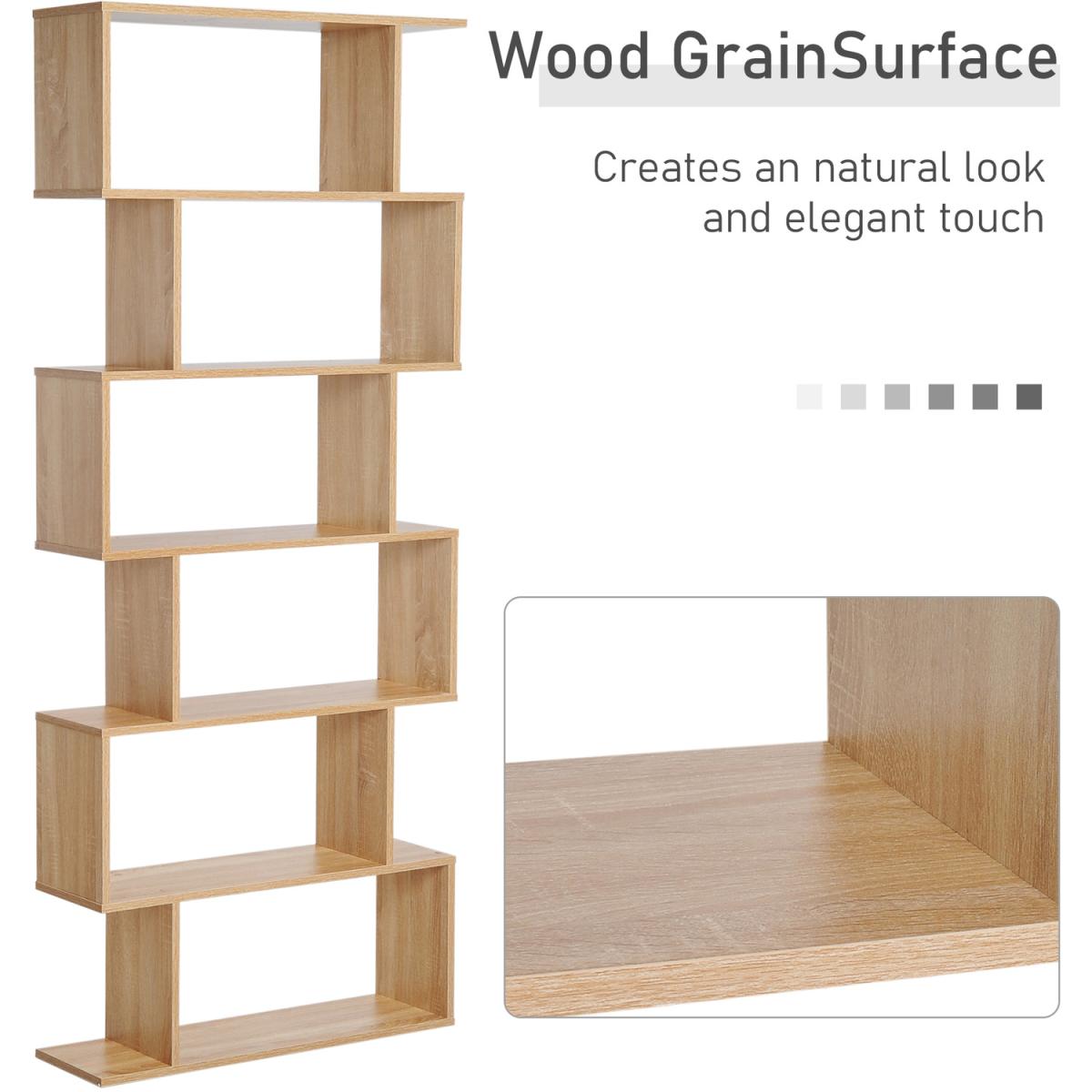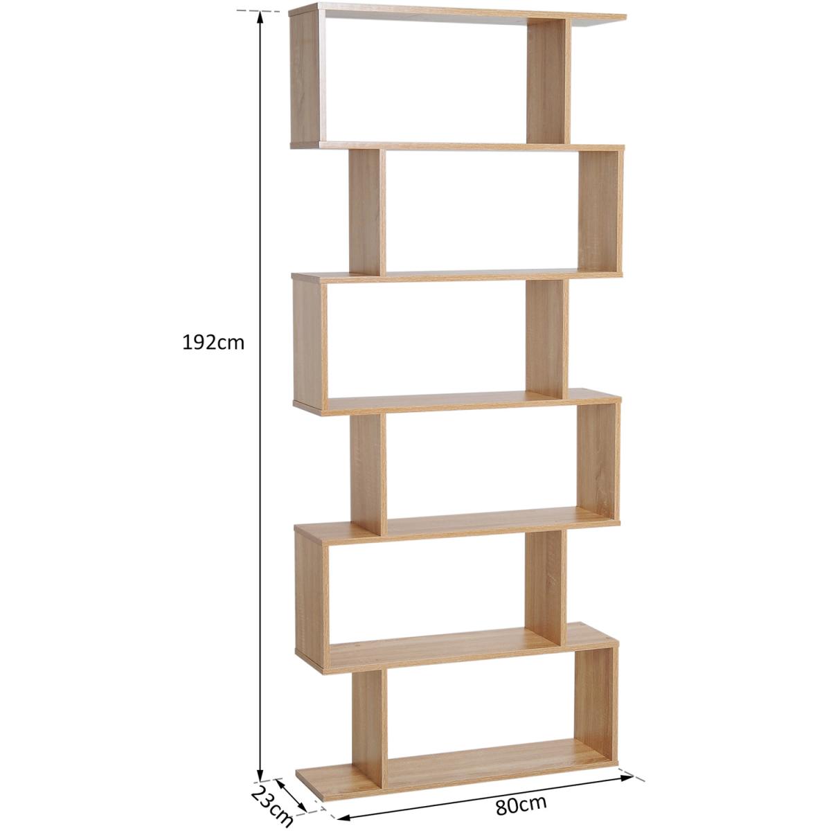 6-Tier Storage Shelf Modern S-Shape Design - Oak Colour