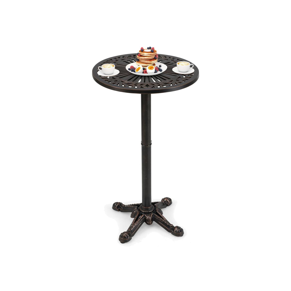 Elevate your outdoor leisure time with this round bar table! Made of premium cast aluminum, this high-top table boasts exceptional durability and resistance to weather conditions. Its sturdy cross-shaped structure and adjustable foot pads provide enhanced stability. This bar table stands out with its intricate bronze carved texture and a sophisticated aesthetic that complements any outdoor space. It is a perfect combination of elegance and durability, which is suitable for garden, backyard, balcony, or poolside.