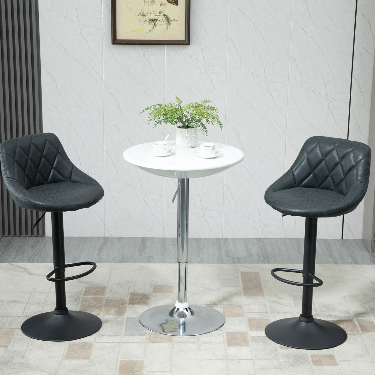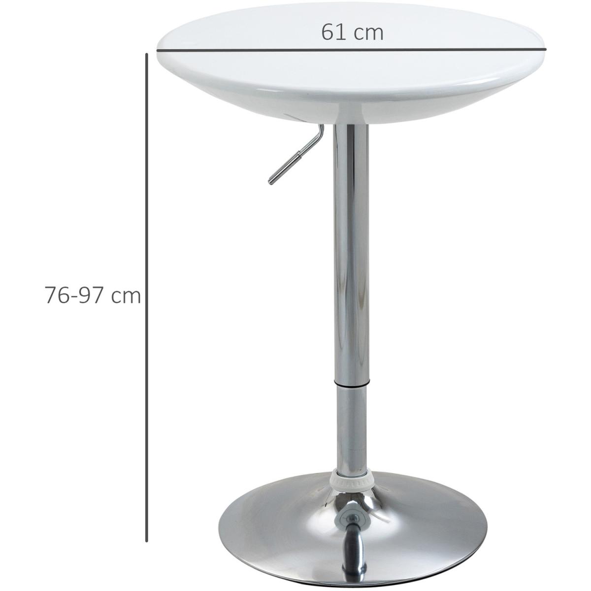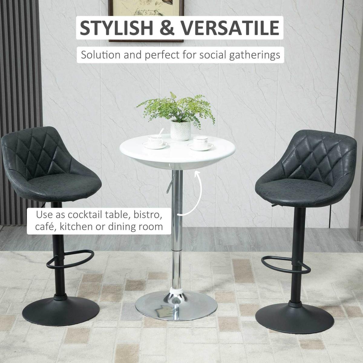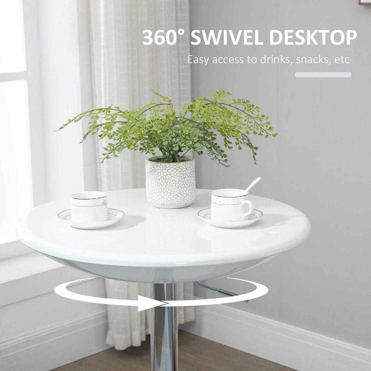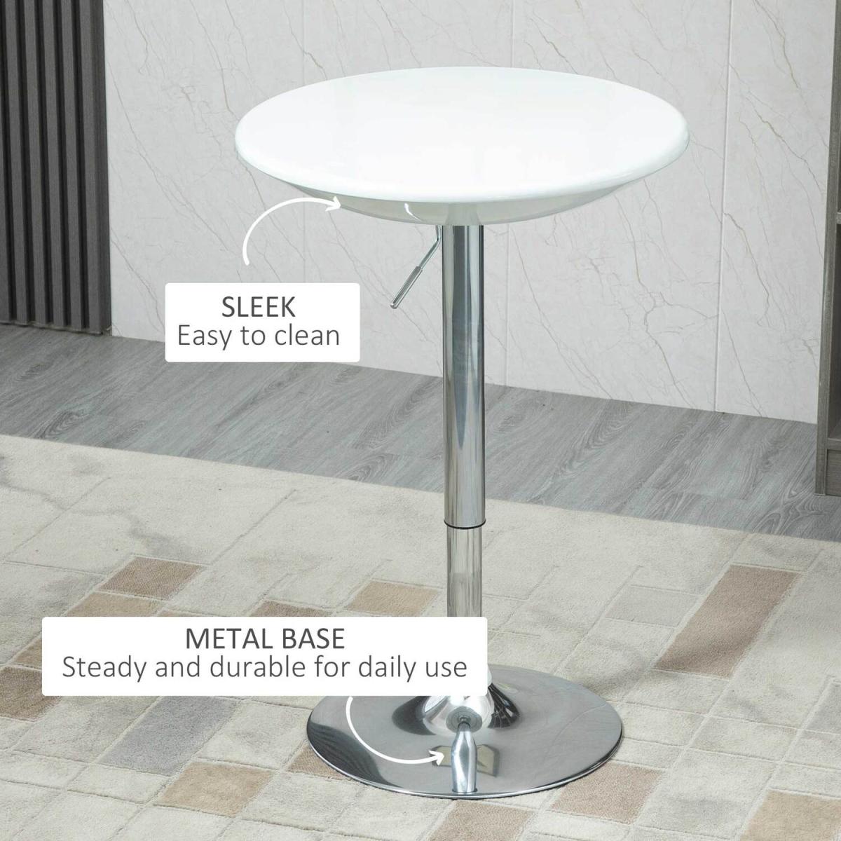 The round ABS spray-painting tabletop is water resistant and easy to clean, consistently displaying a sense of modern style and class. With a simple pneumatic gas rod, this table can be adjusted to accommodate either seated or standing guests depending on the situation or setting, while the convenient 360 degree top swivels adds even more function to fashionable form. Table can support up to 80 kg for your daily use.