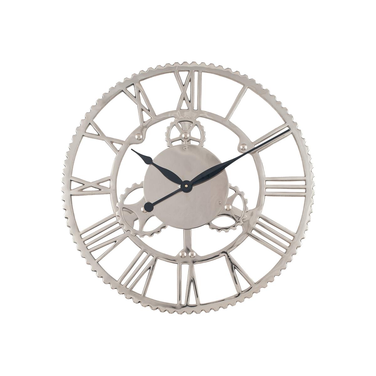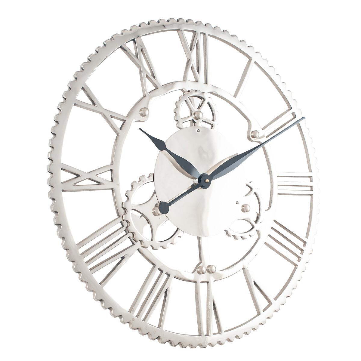 61cm Shiny Nickel Cog Design Round Wall Clock