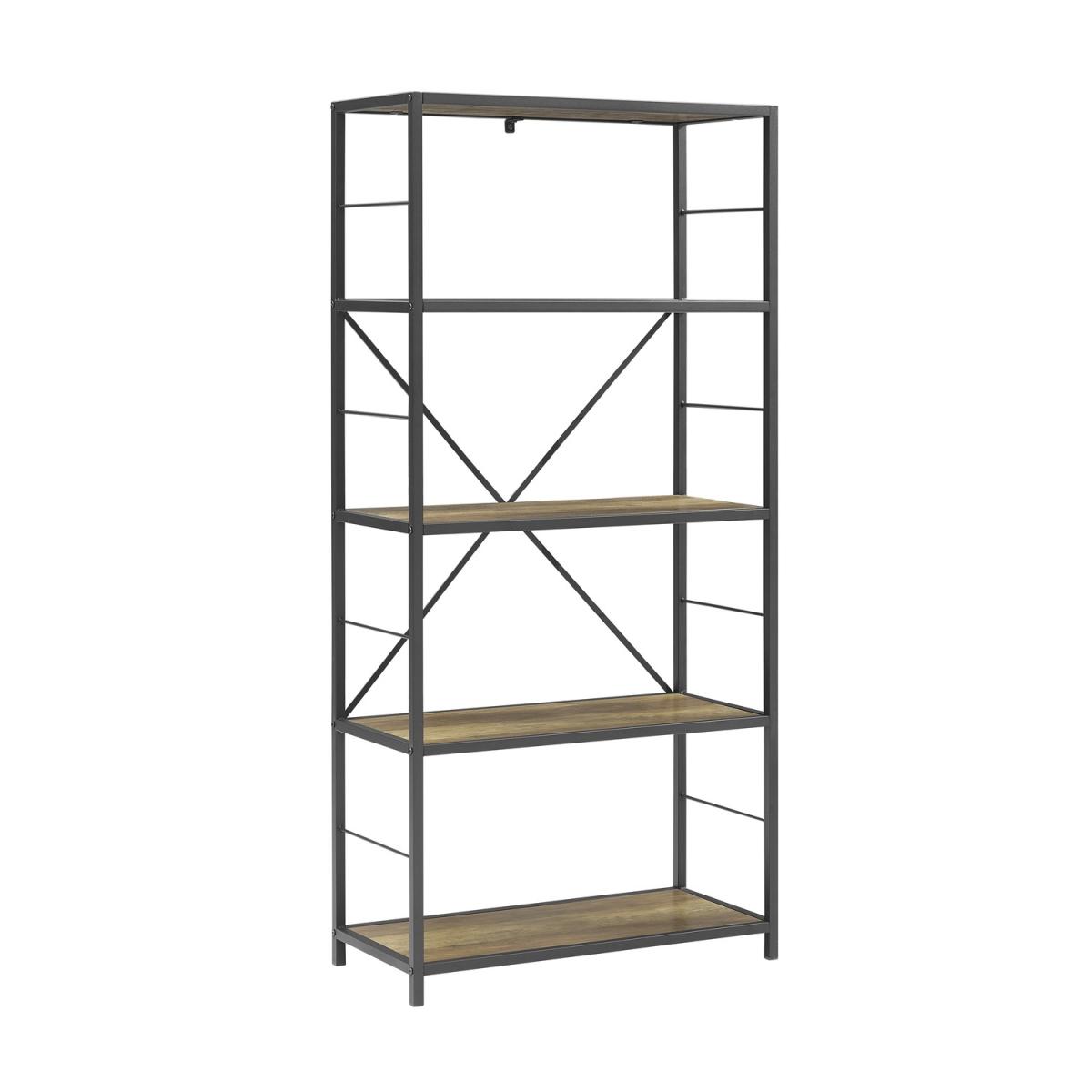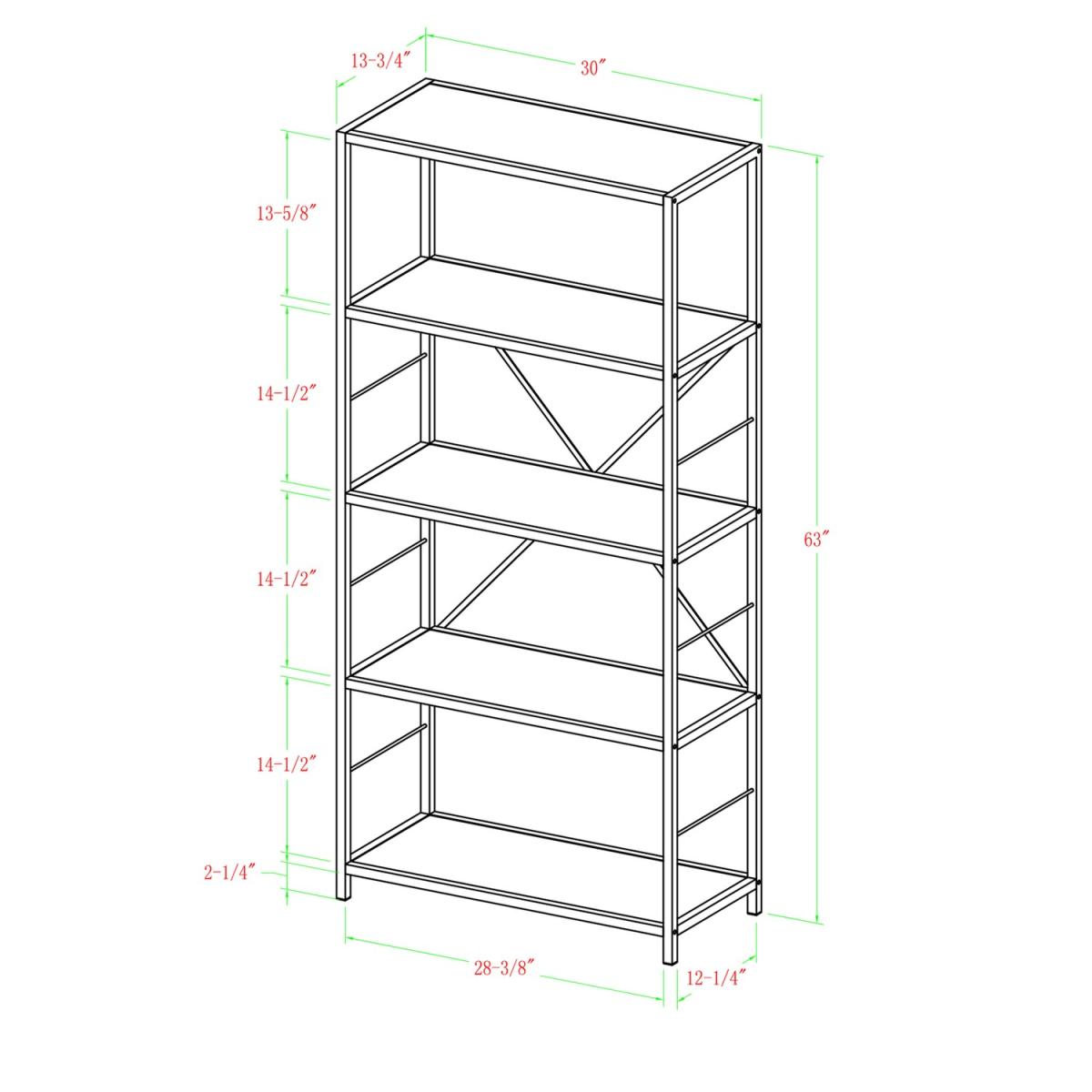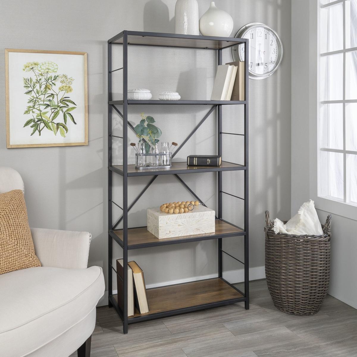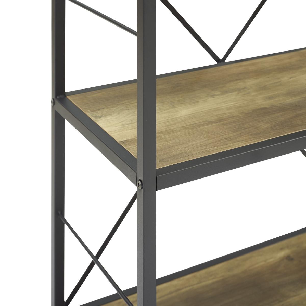 Dimensions H161 x W77 x D36 cm. Make this rich rustic bookshelf your showcase piece for your books accessories décor and more. The various shelving layers offer ample storage space for all of your media needs and can be positioned near a wall in your living room bedroom entryway or hallway. The mix of metal and wood shelves made of high-grade MDF and laminate make for a clean lined rustic industrial appearance complementing any room décor and making it the perfect addition to your home. Features. Made out of high-grade MDF and powder-coated metal. With a reliable construction with a metal frame. The four shelves provide ample storage space for your décor books and more. Perfect for any room in your home from your living room to your home office. With a rustic oak finish. Ships ready-to-assemble with step-by-step instructions..