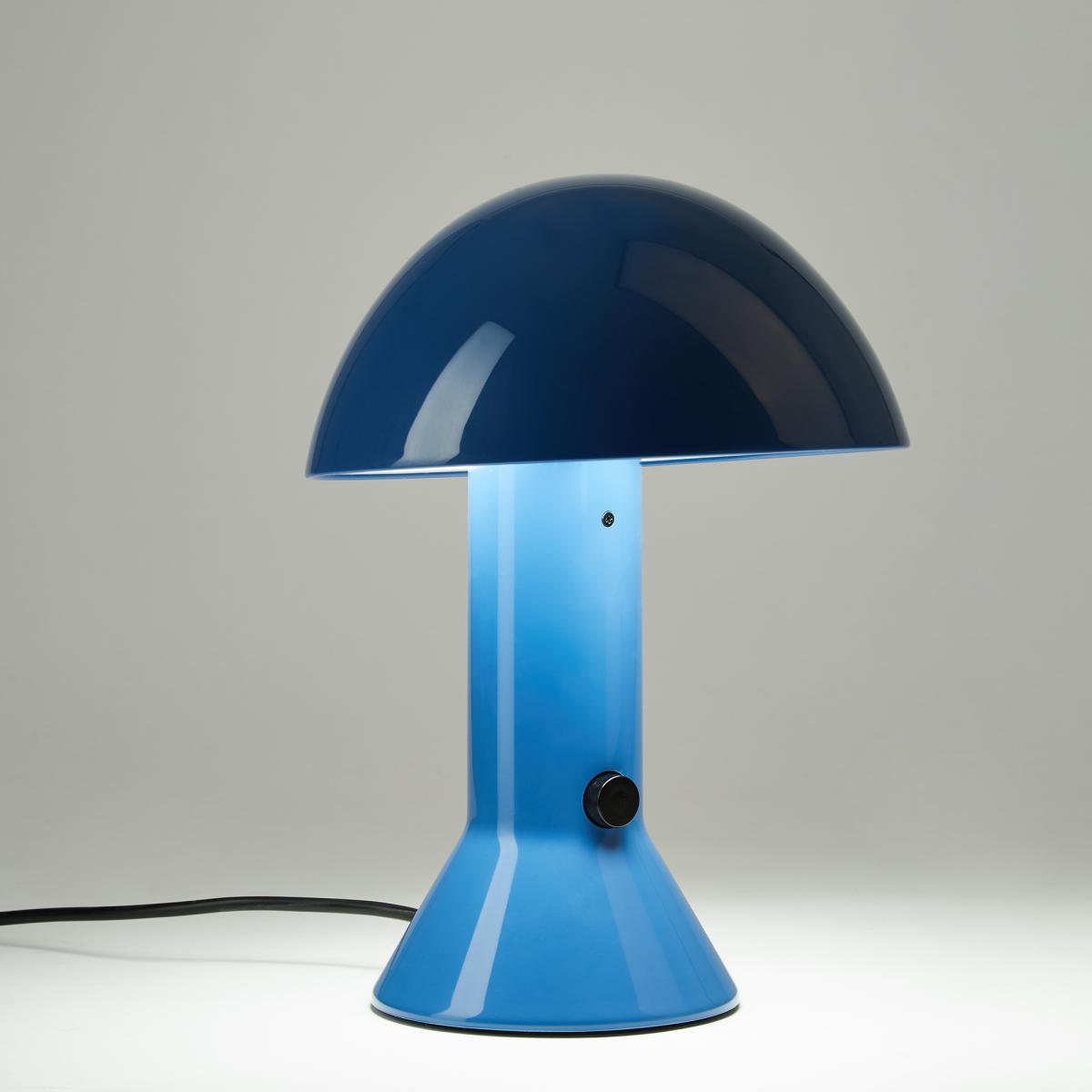 Designed by Elio Martinelli in 1976, the eye-catching 685 Elmetto Table Lamp from Martinelli Luce is available in five prominent hues. Fashioned from resin, the European-crafted lamp exhibits a cone base topped with an adaptable dome-shaped diffuser. A large switch completes this sculptural piece, making it easy to find in the dark. A reliable friend, a companion of the evening, the Elmetto's adjustable reflector is simple to manage with the touch of a finger, shielding the light source and offering an indirect light. Requires: 1x max. 6W E27 bulb (not included).