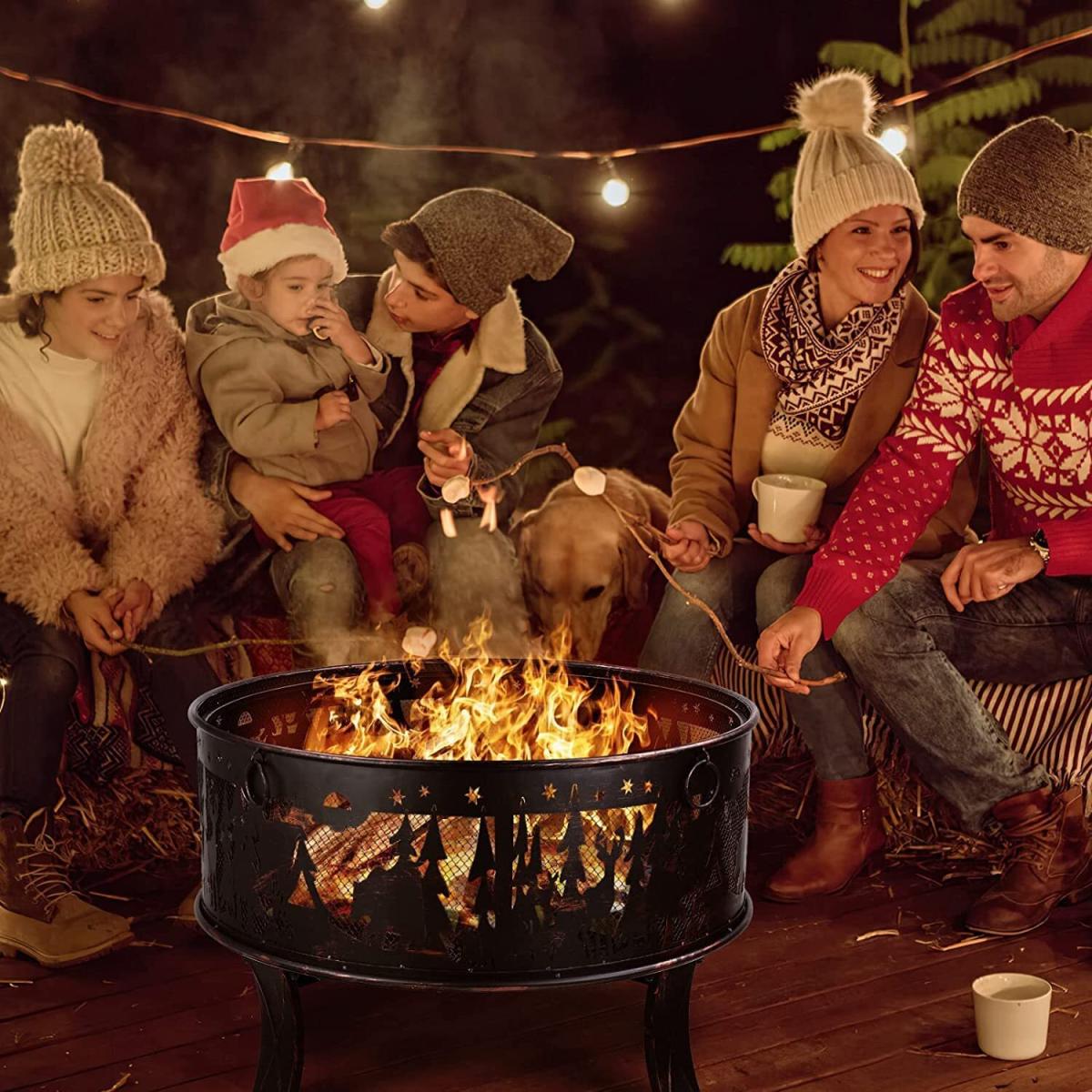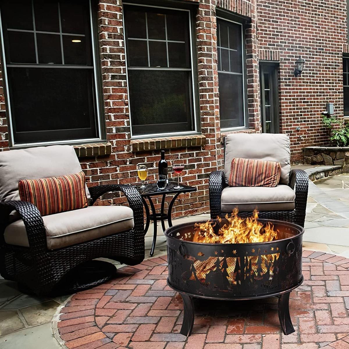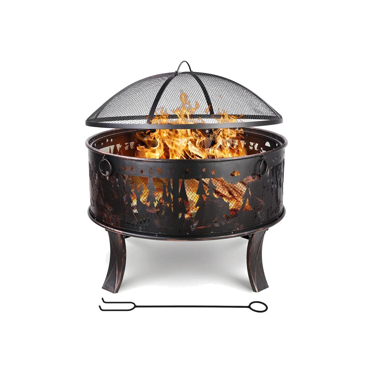The circular hearth can circulate air and heat, providing continuous warmth and comfort. A well-ventilated iron grille can provide more heat. Also, you can clearly see the internal fire source and add wood or estimate the end time. The flower and grass pattern on the outside of the fire bowl looks very elegant. The fire bowls are made of durable thick iron and are coated with high-temperature-resistant bronze paint. It has excellent rust resistance and heat resistance up to 932 Fahrenheit Degree. The frame, which consists of 4 legs, ensures general stability. Safe: The protective grille prevents sparks or dirt from splashing. The poker can easily check the flame and raise the flame guard. The fire basket can be used for heating and grilling. You can also roast hot dogs or marshmallows, which are great for entertaining guests. It has a beautiful Elk Pattern, and adapts to all environments. Perfect for cold winter nights offers warmth and creates a warm atmosphere. In addition, it is equipped with four rings for carrying to make it easier to carry the fire bowl. The large capacity fire bowl can hold more charcoal or wood, the large garden fire bowl 69 * 69 * 65cm can meet the needs of a campfire party and a multi-person barbecue, and is very suitable for meeting with family and friends. Equipped with a charcoal grate that leaves enough air gaps for the burning carbon and wood, which makes the wood easier to burn.