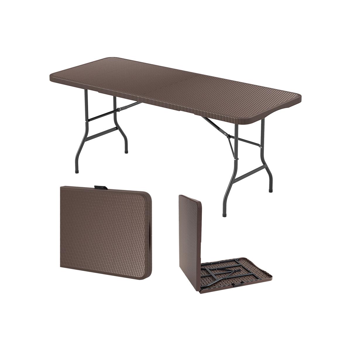 Experience outdoor dining at its best with this spacious folding table. Made from premium HDPE material, the 4 cm thickened tabletop withstands long-time outdoor use. Measuring 180 x 74 cm, the table is perfect for family or friend gatherings. The rattan patterns on the tabletop adds more elegance. Moreover, the table is supported by heavy-duty metal legs, ensuring stability and 180 kg load capacity. For easy storage and transport, it folds securely with safety locks. The versatility extends from picnics to kitchen use, making it an ideal addition to any setting.