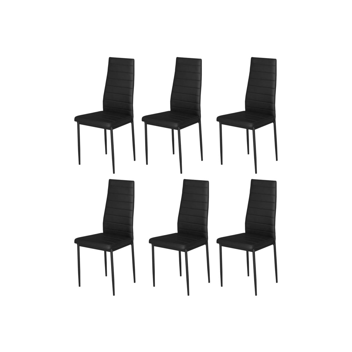 6Pcs White High Back Faux Leather Armless Dining Chairs - Black