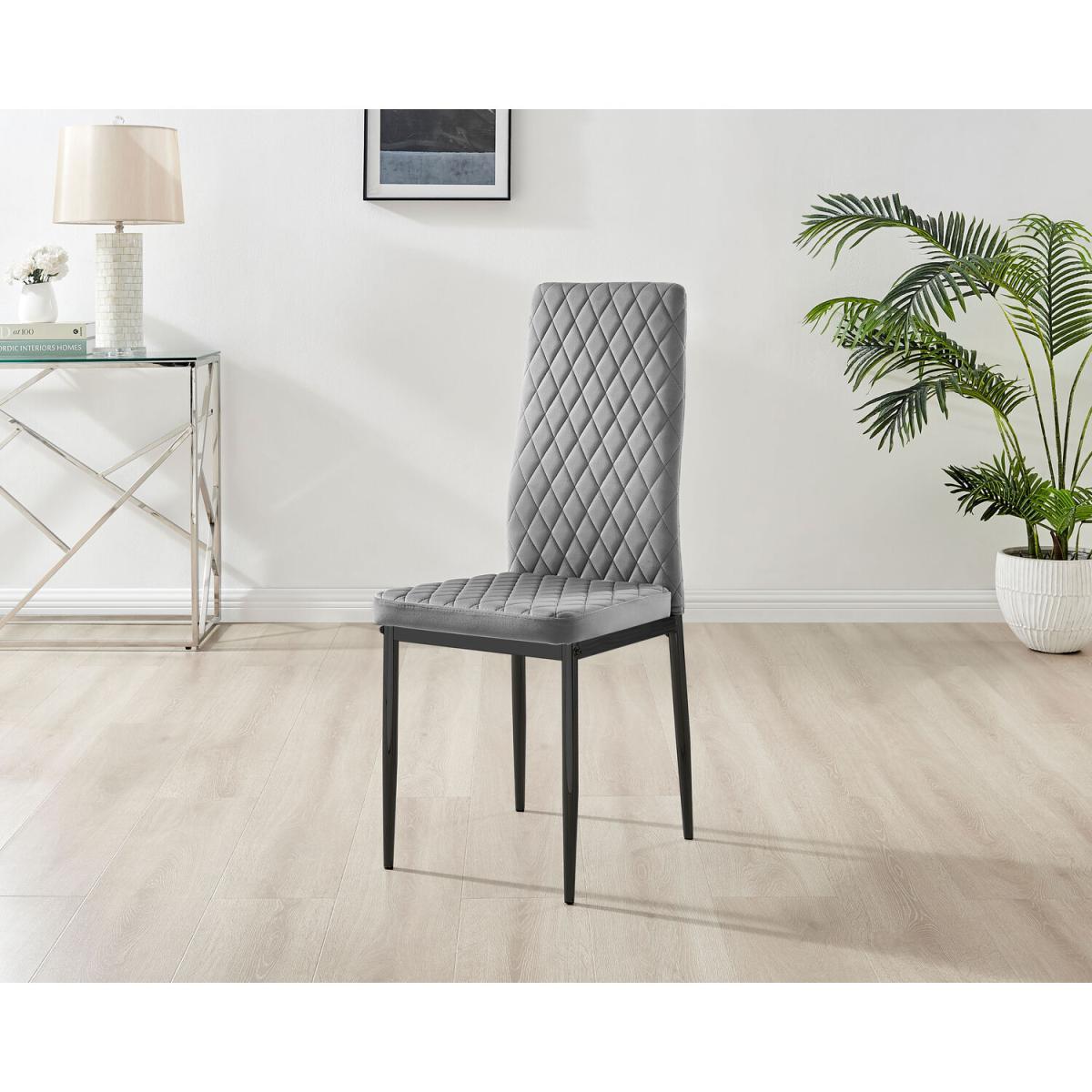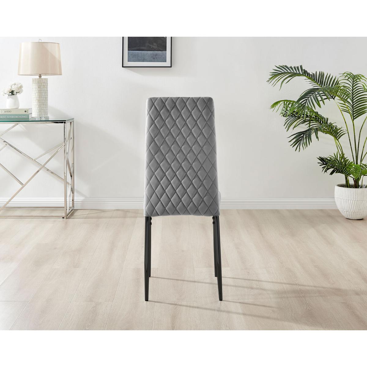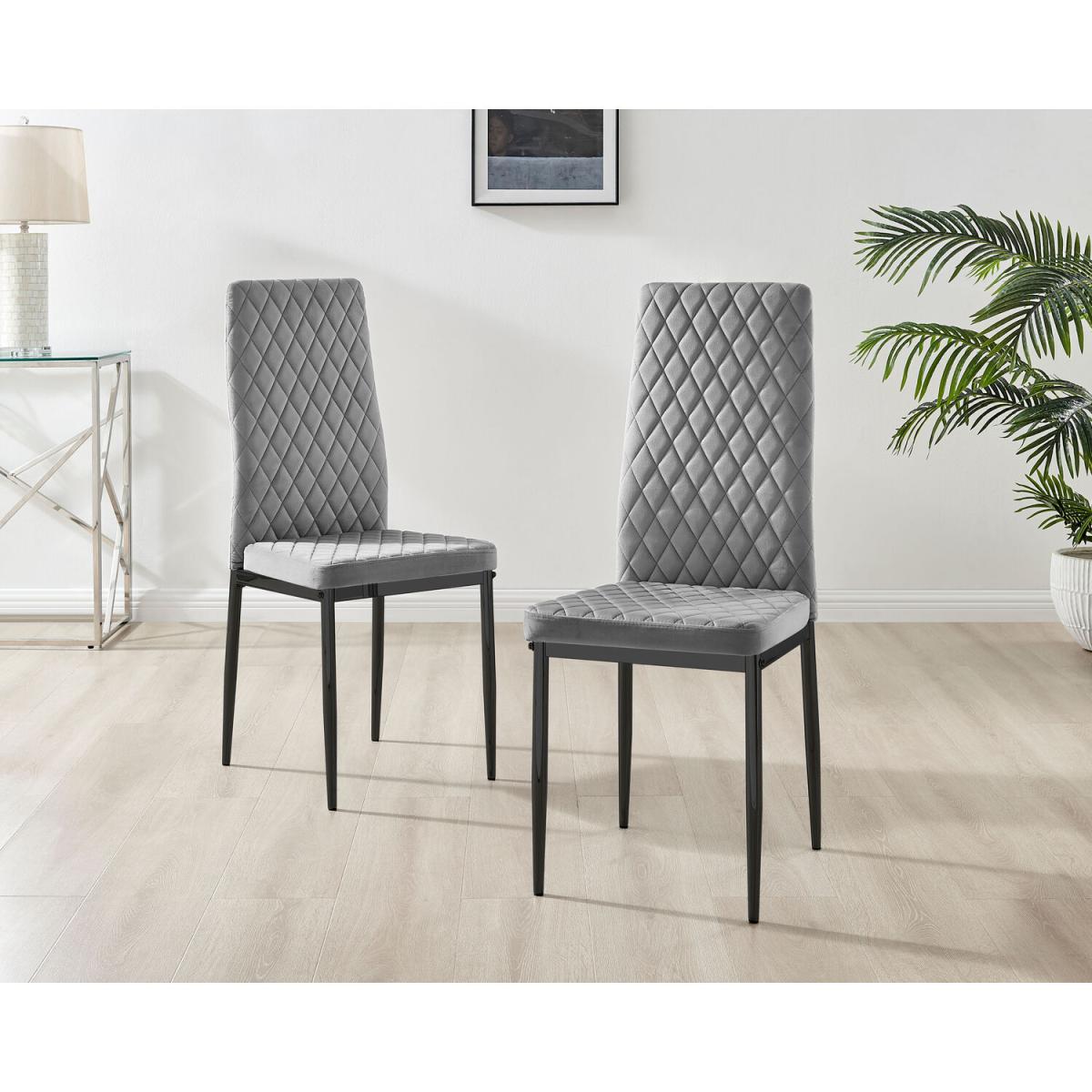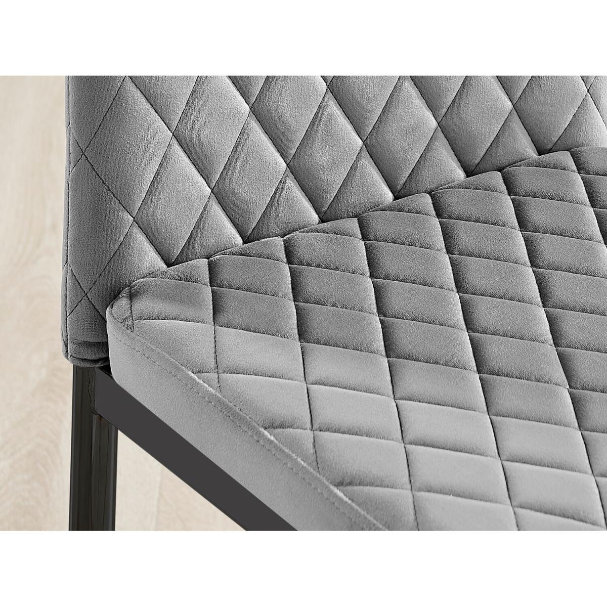 Upholstered in soft touch velvet and finished with diamond pattern stitching the Milan dining chairs would seamlessly fit in with most dining spaces, whilst not compromising on either style or comfort. The stylish shiny chrome silver leg and hatched velvet combination gives this chair a contemporary edge, whilst it's simple design allows for practical everyday usage. The chairs are made from high quality durable velvet that's easy to keep clean and are ergonomically designed for maximum comfort and support. They feature a deep foam seat cushion and plastic feet to protect the floor from any damage! At an unbeatable price you cannot go wrong with these chairs!