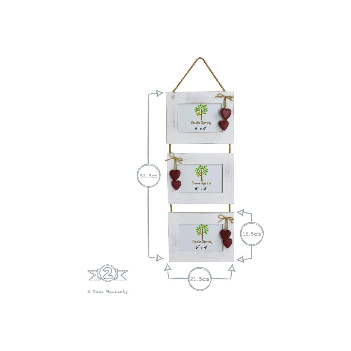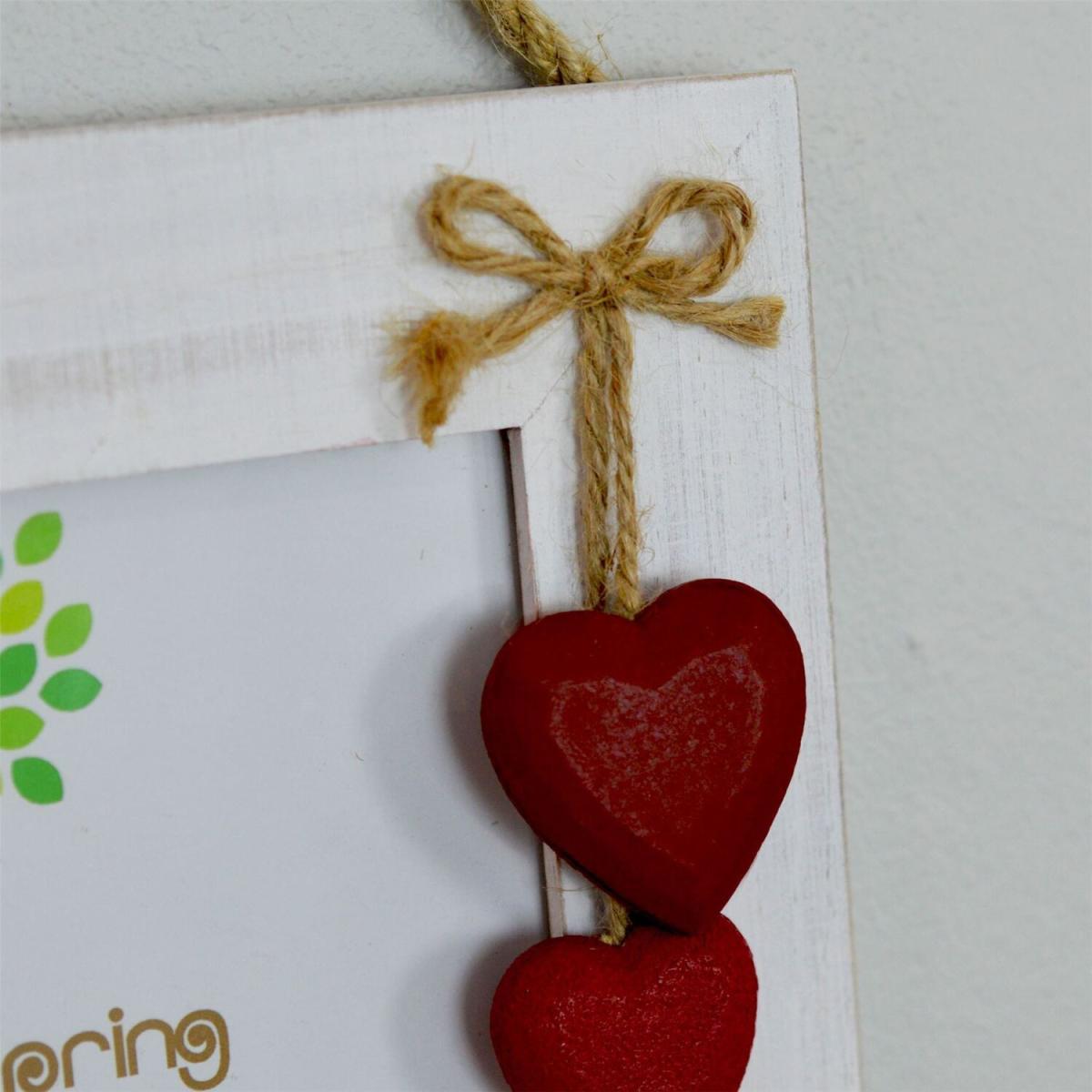 6x4" Rustic Red Hearts Hanging 3 Photo Frame - White