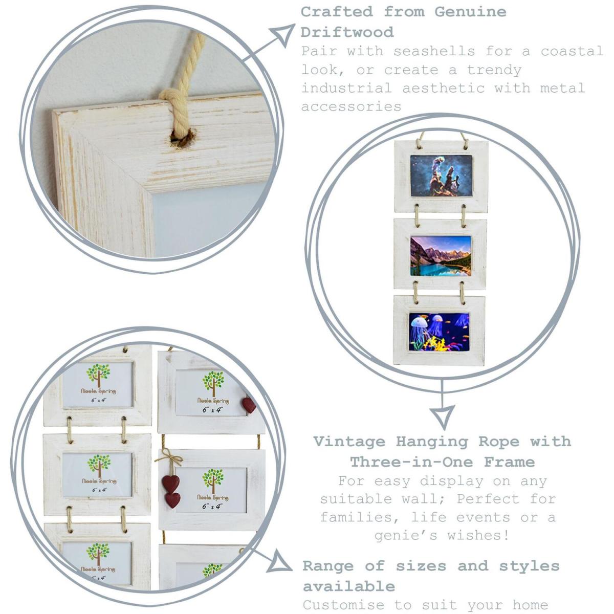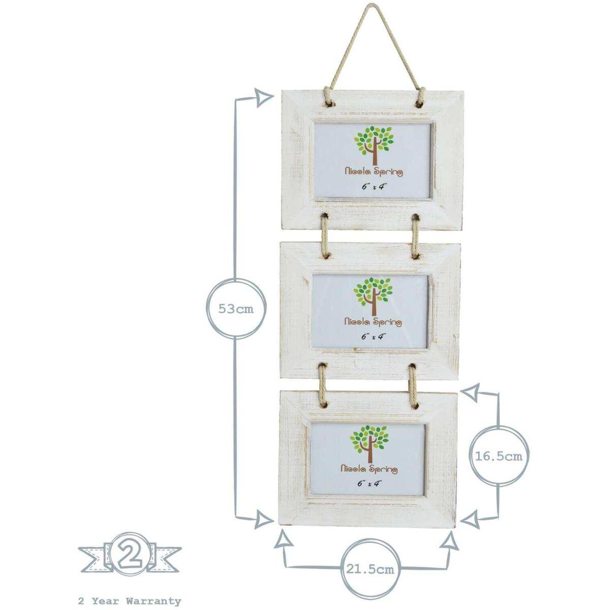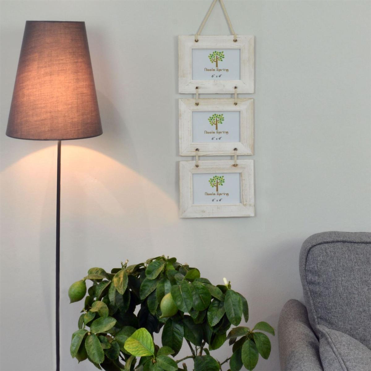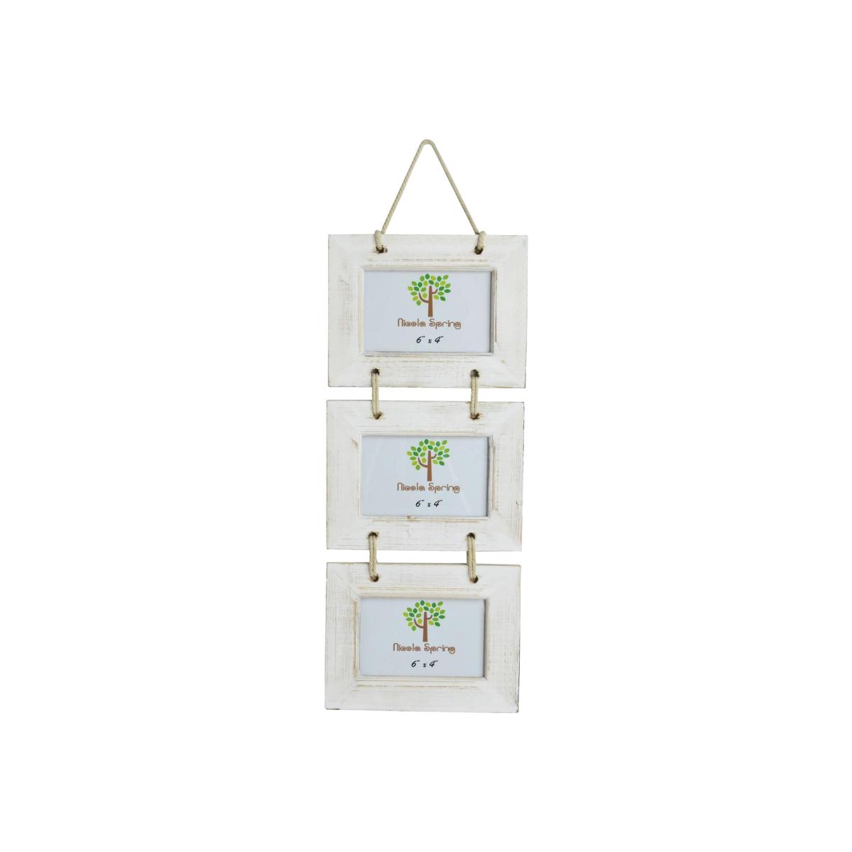 6x4" Rustic Wooden Hanging 3 Photo Frame White - White
