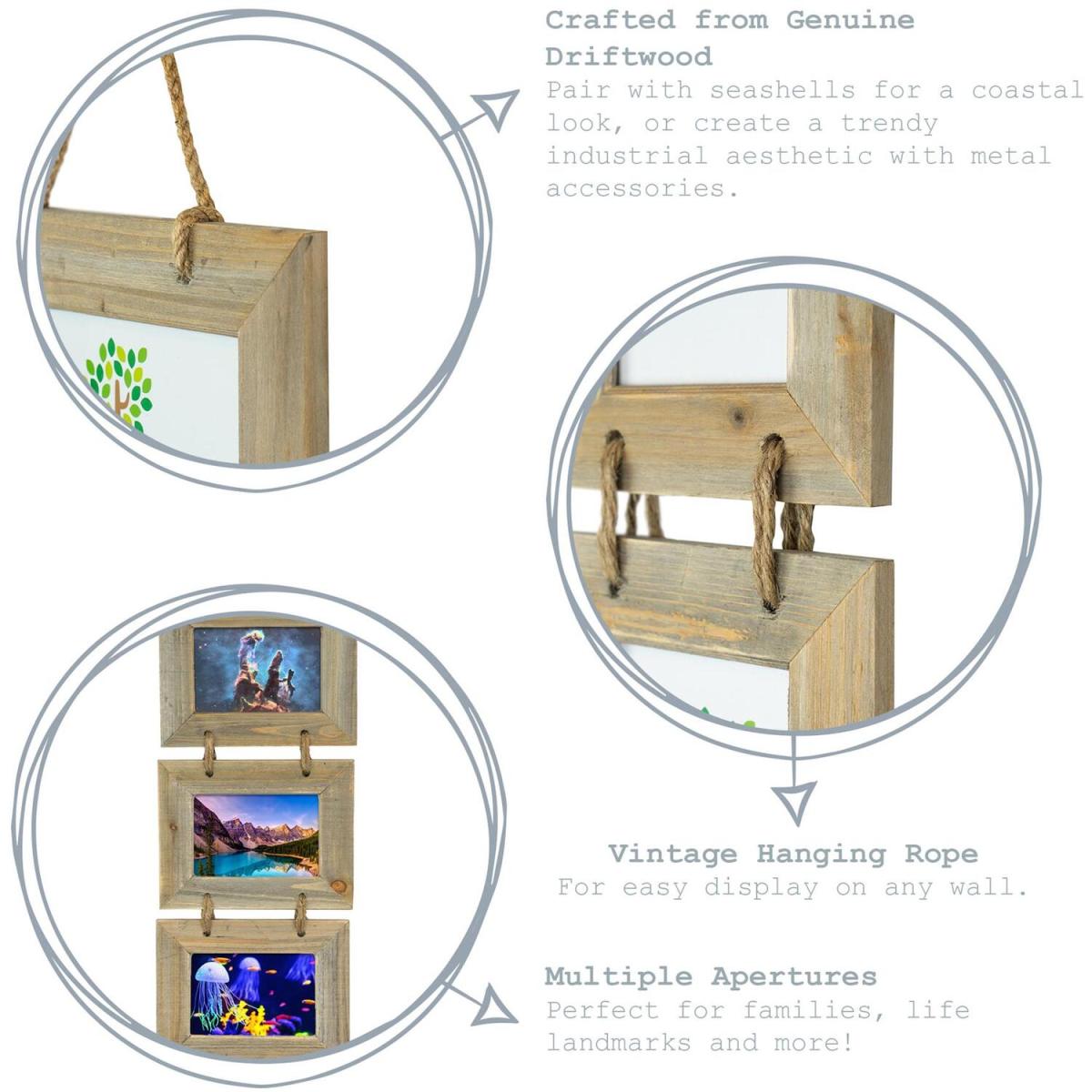 6x4" Rustic Wooden Hanging Photo Frame Natural - Brown