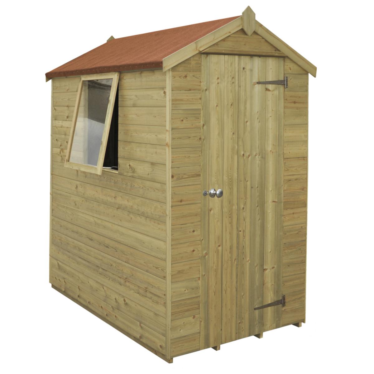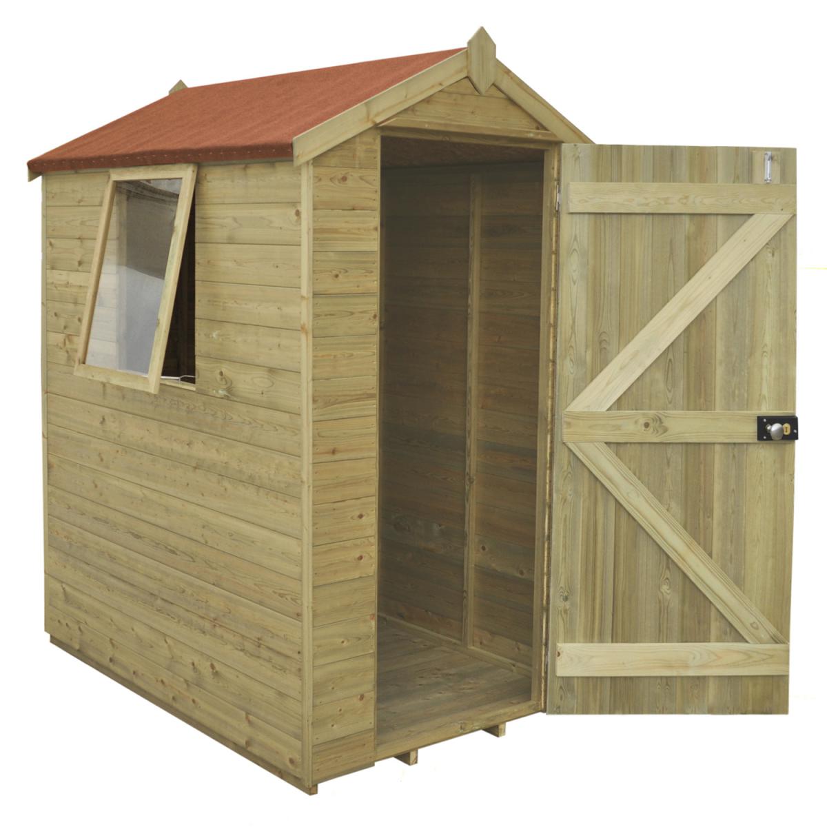 Not only incredibly practical, this fantastic Tongue and Groove Apex Shed will look stunning amongst your garden greenery with its wooden finish and traditional apex roof. Featuring a large door for easy access and a window to allow natural light to flood the building, the shed is perfect for storing all your garden goods, from lawn mowers and patio furniture to wellies and tools. Manufactured from overlapping tongue and groove boards, the tight-fitting nature of this construction material offers greater protection from wind and rain penetration. The strong, fully braced door is fitted with stainless steel hidden hinges, the lock and handle add security with the opening toughened glass windows and the quality stainless steel catches provide extra ventilation. Formed of the highest quality with a robust floor and waterproof roof, this wonderful shed really is the ideal storage solution.