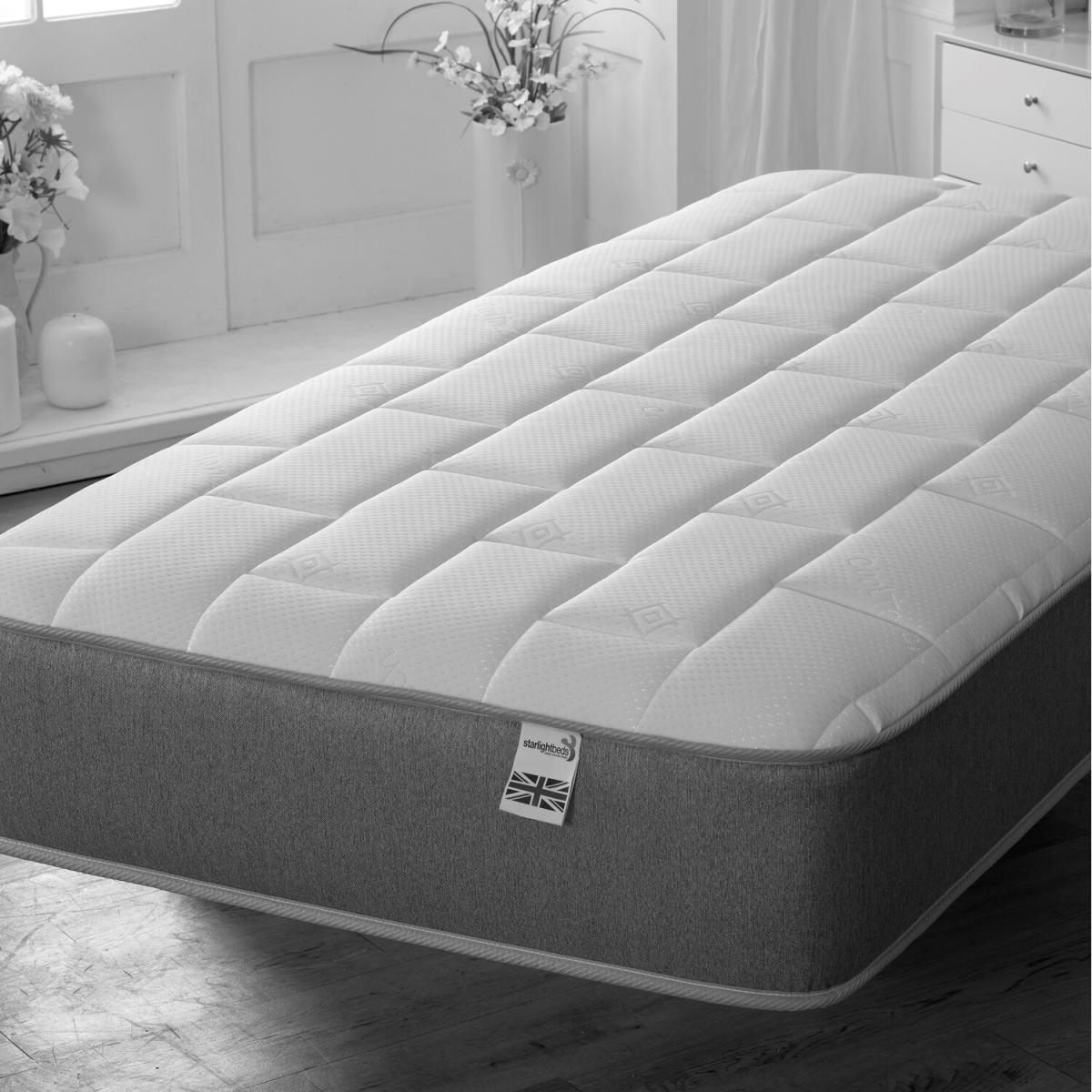 This hybrid small single mattress combines both memory fiber and a 13.5 gauge open coil spring unit, helping reduce pressure points for increased comfort. Covered in a luxurious deep quilted top panel for extra comfort and stylishly finished with a grey border. This is mattress free from foam and the big brick design makes this mattress more stylish.
