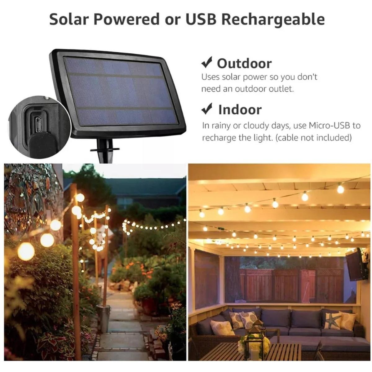 7.6M (25FT) LED Solar - USB Power "Festoon" Globe String Lights - Warm White