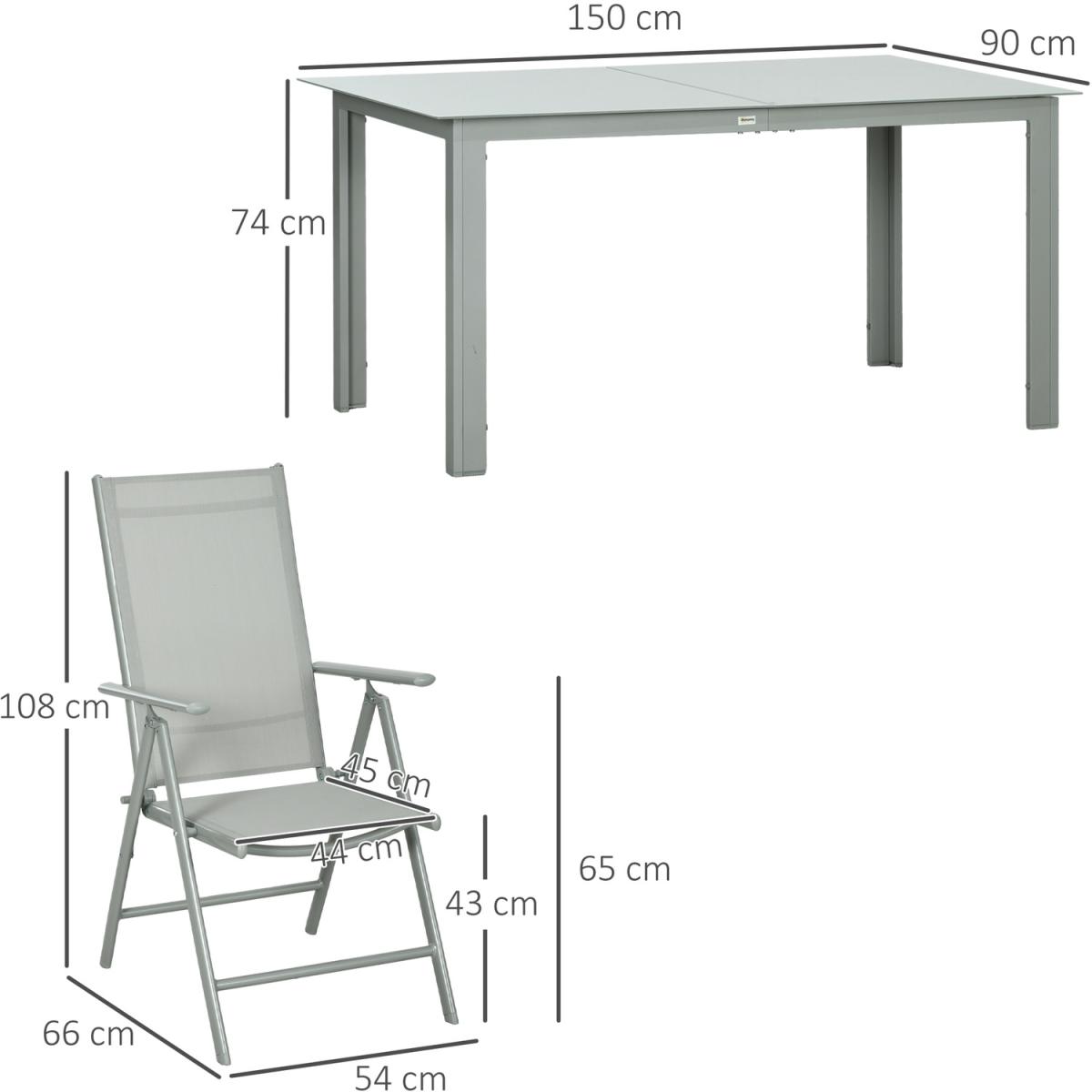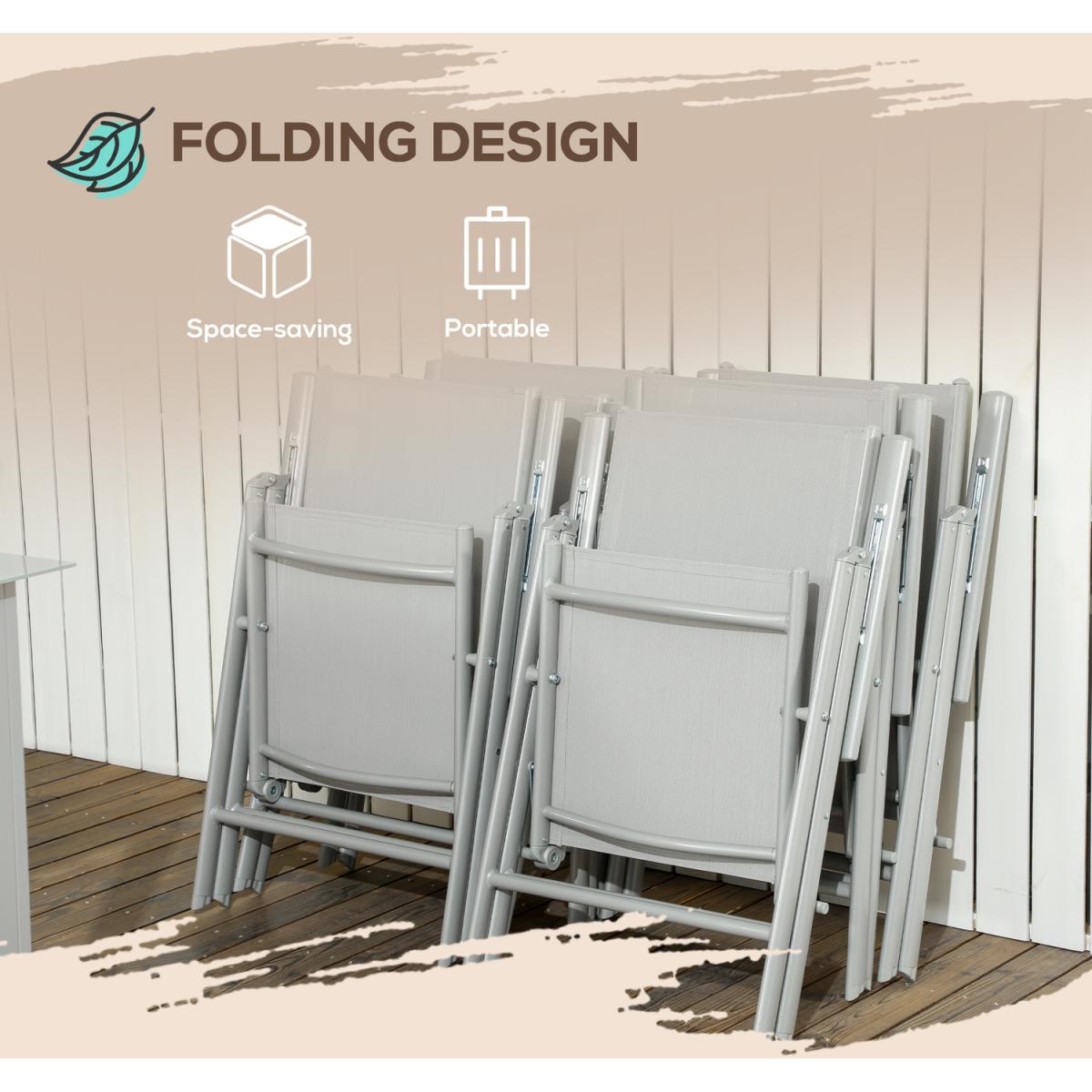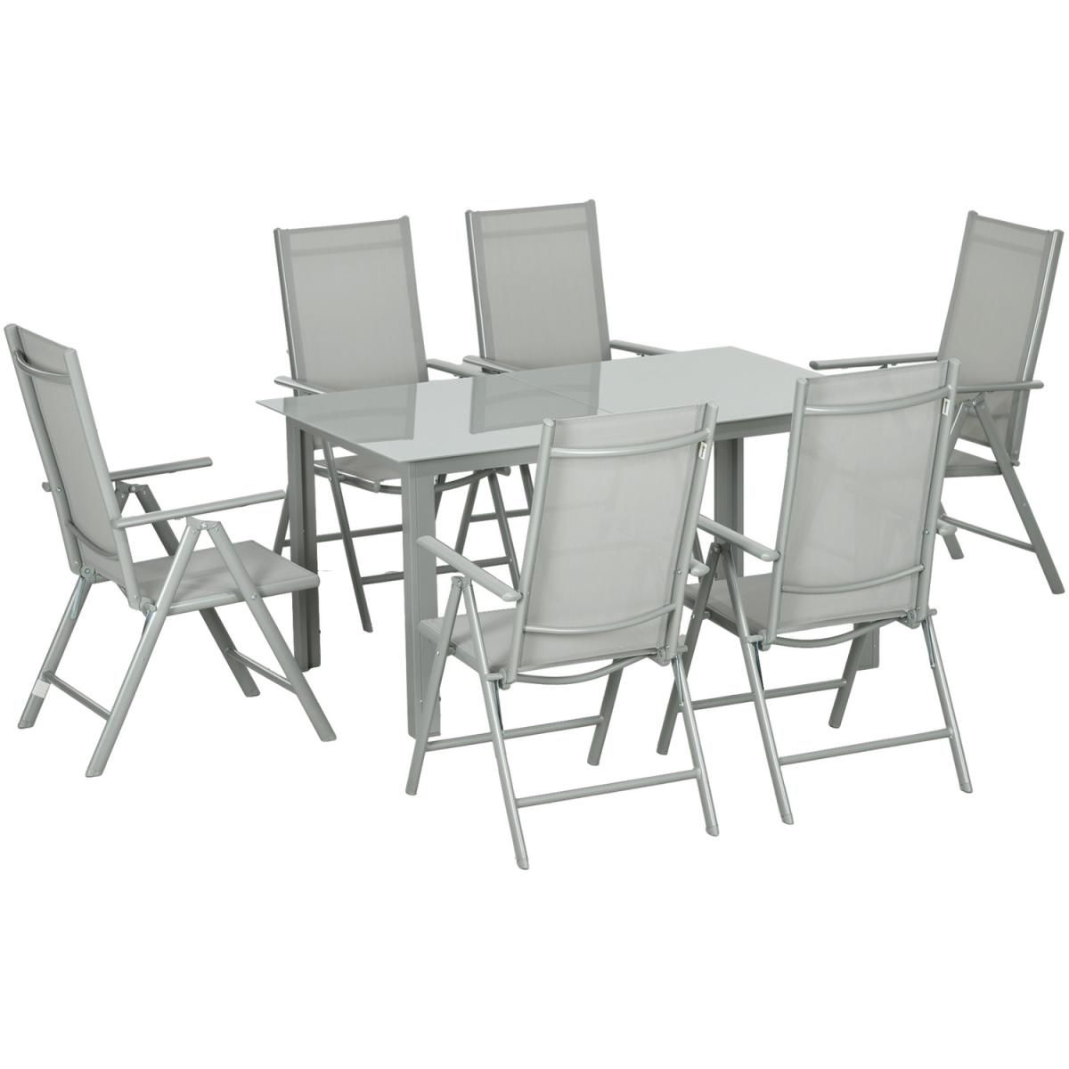 7 Piece Garden Dining Set, Table and 6 Folding Chair - Grey