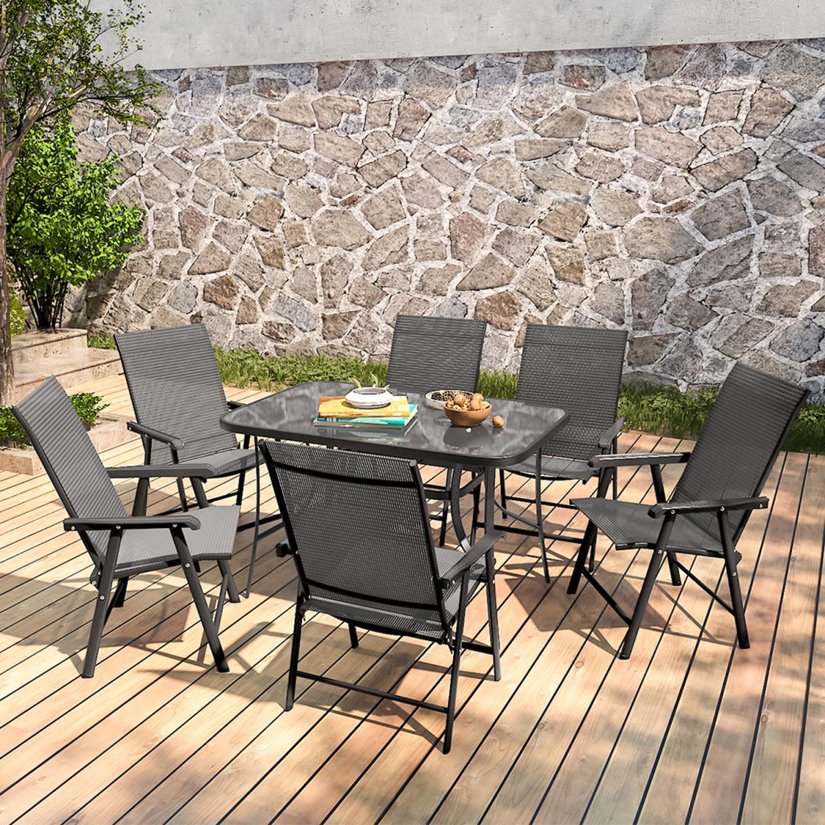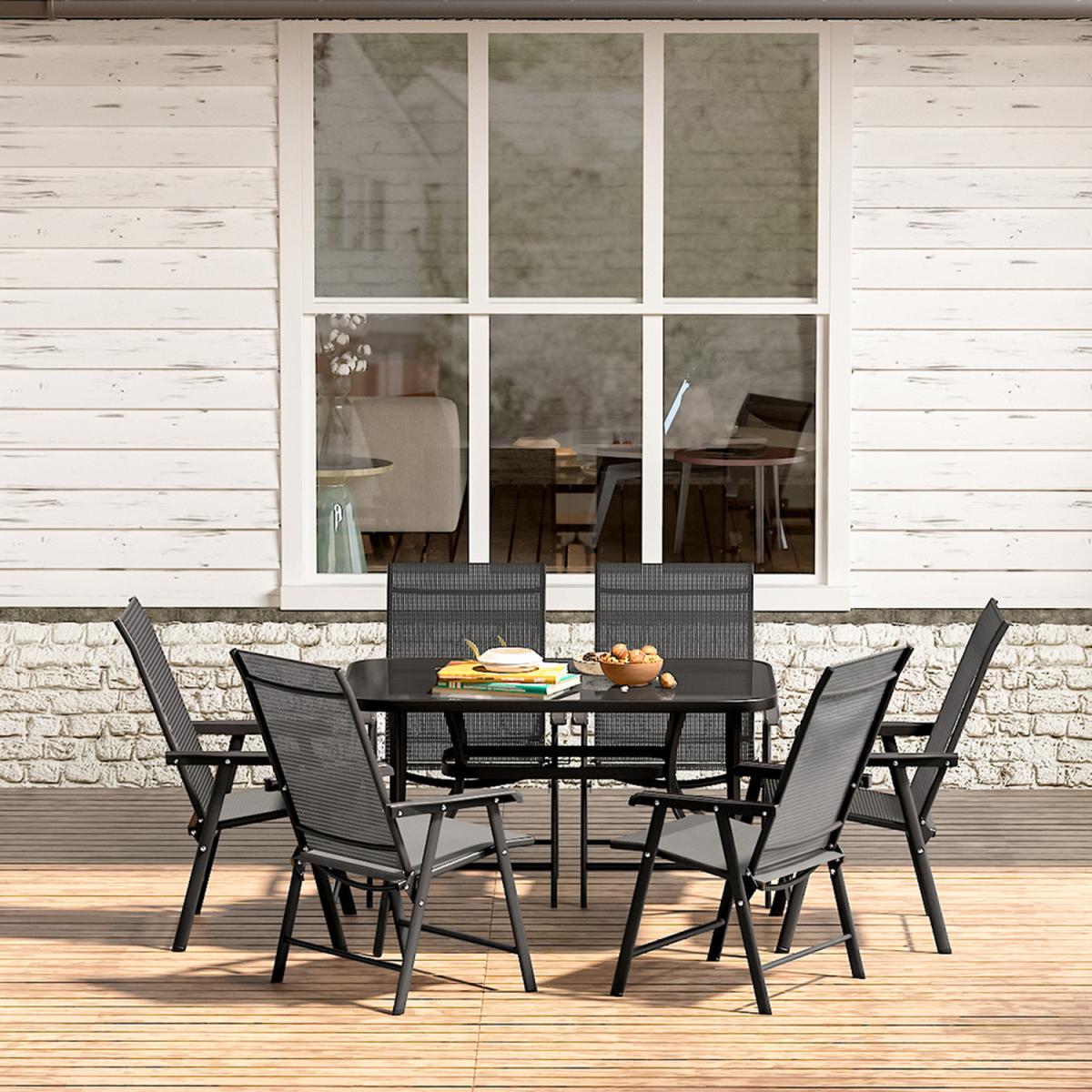 7-Piece Outdoor Patio Dining Bistro Set - Black / 6 folding chairs and a 150cm Rectangle dining table