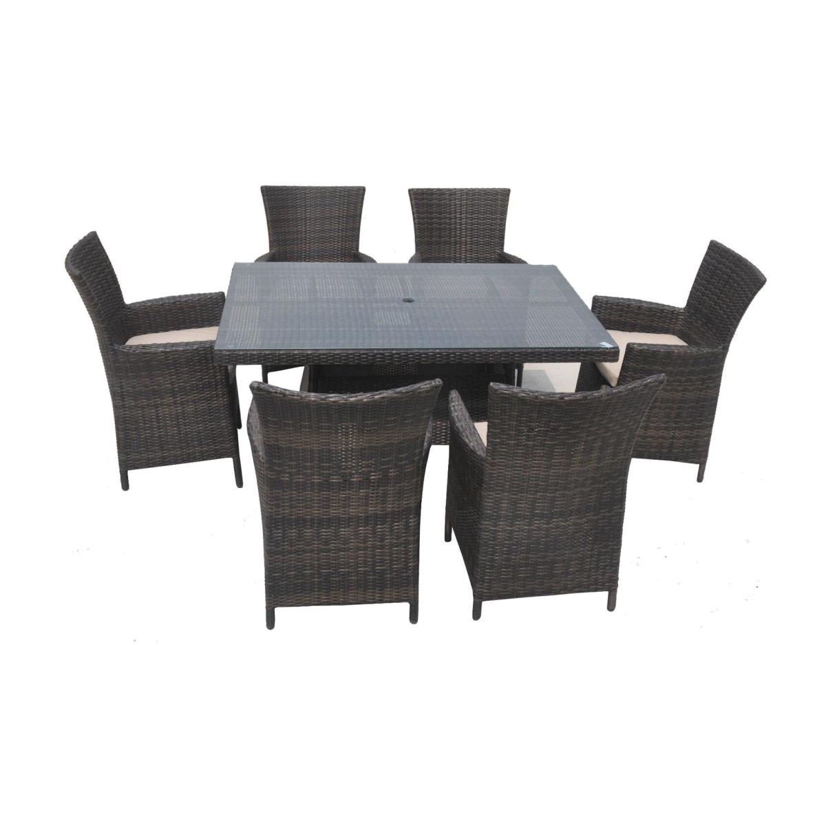 7 Piece Rattan Dining Garden Set with Cushion - Brown / 6x chairs, 1x Rectangle table