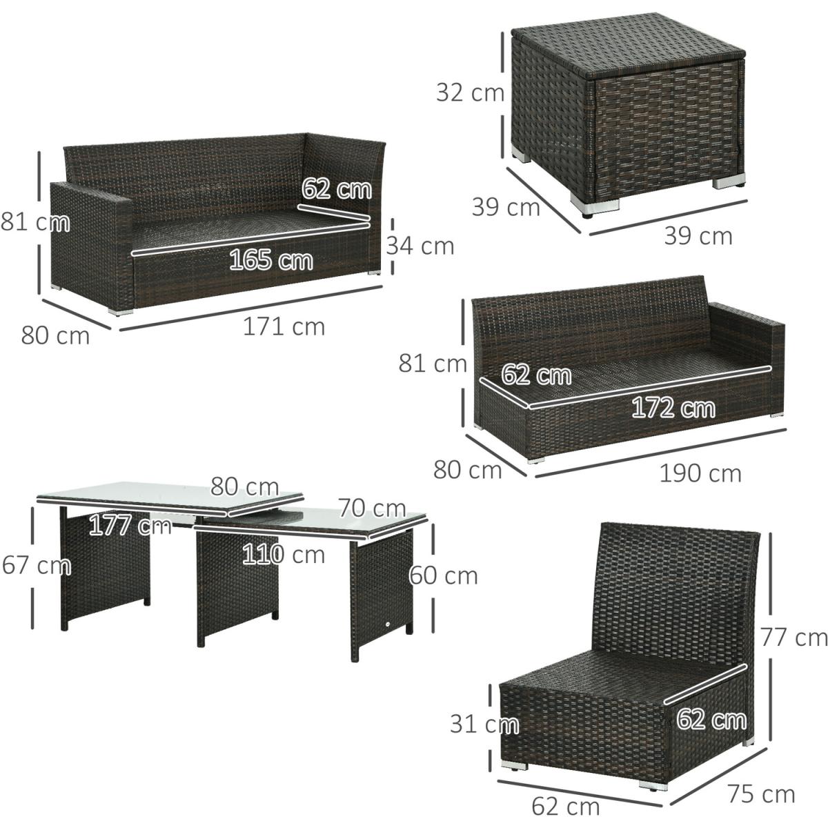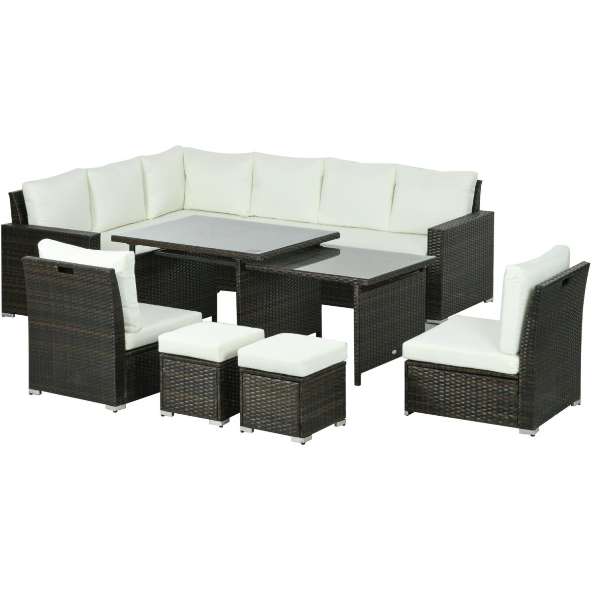 Do you like having family and friends over for dinner and throwing parties but having trouble deciding what to buy This Outsunny outdoor conservatory furniture has the pieces you're looking for. This patio couch set has ten seats for plenty of fun and enough for everyone to gather around the table and catch up, eat or play party games. Enjoy sitting and being outdoors with the cushioned seats that can be washed. Bring the party to your home with this rattan garden furniture from Outsunny.