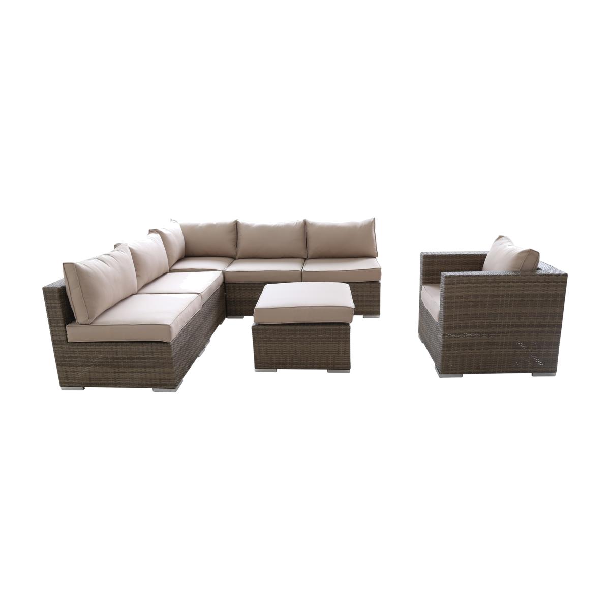 This 7 pieces patio PE wicker rattan corner sofa set is the best choice for you. It's great furniture to decorate your garden. The classic yet simple design made it look great in any setting. This set is a useful piece of furniture for you. It has comfortable sofas you can sit on it to enjoy your leisure time. The space-saving design makes your garden delicate.