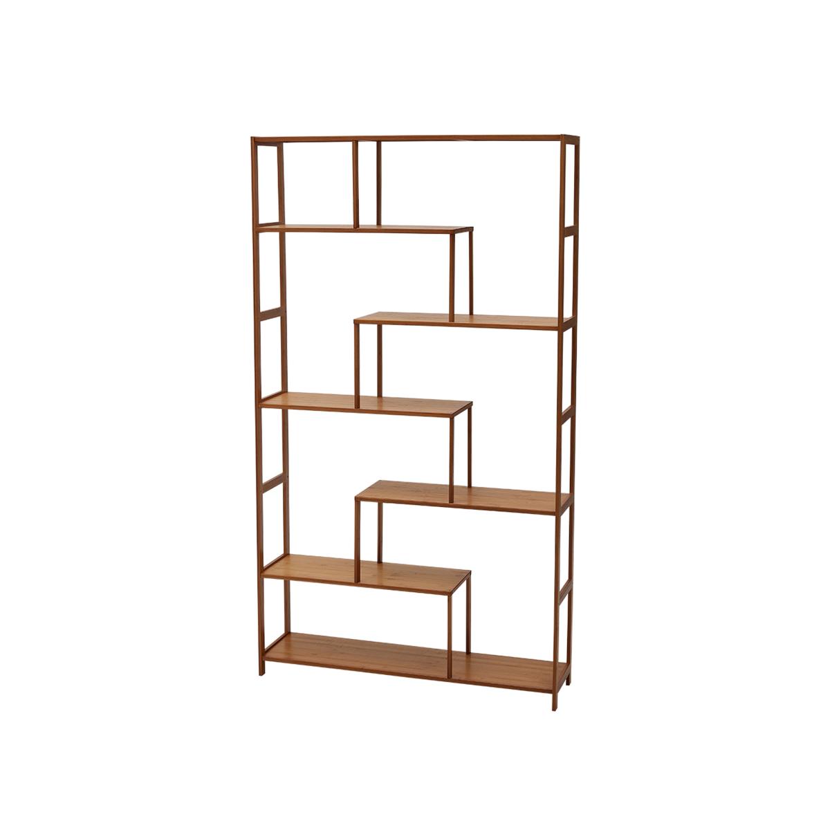 Crafted from quality wood, this tall display rack showcases a striking geometric design, offering a stylish way to present books, magazines, ornaments and treasured collections. Its sturdy build ensures reliable use while adding a decorative accent to your interior. Suitable for a range of settings including offices, hallways and living rooms, the natural wood finish blends effortlessly with existing furnishings.
