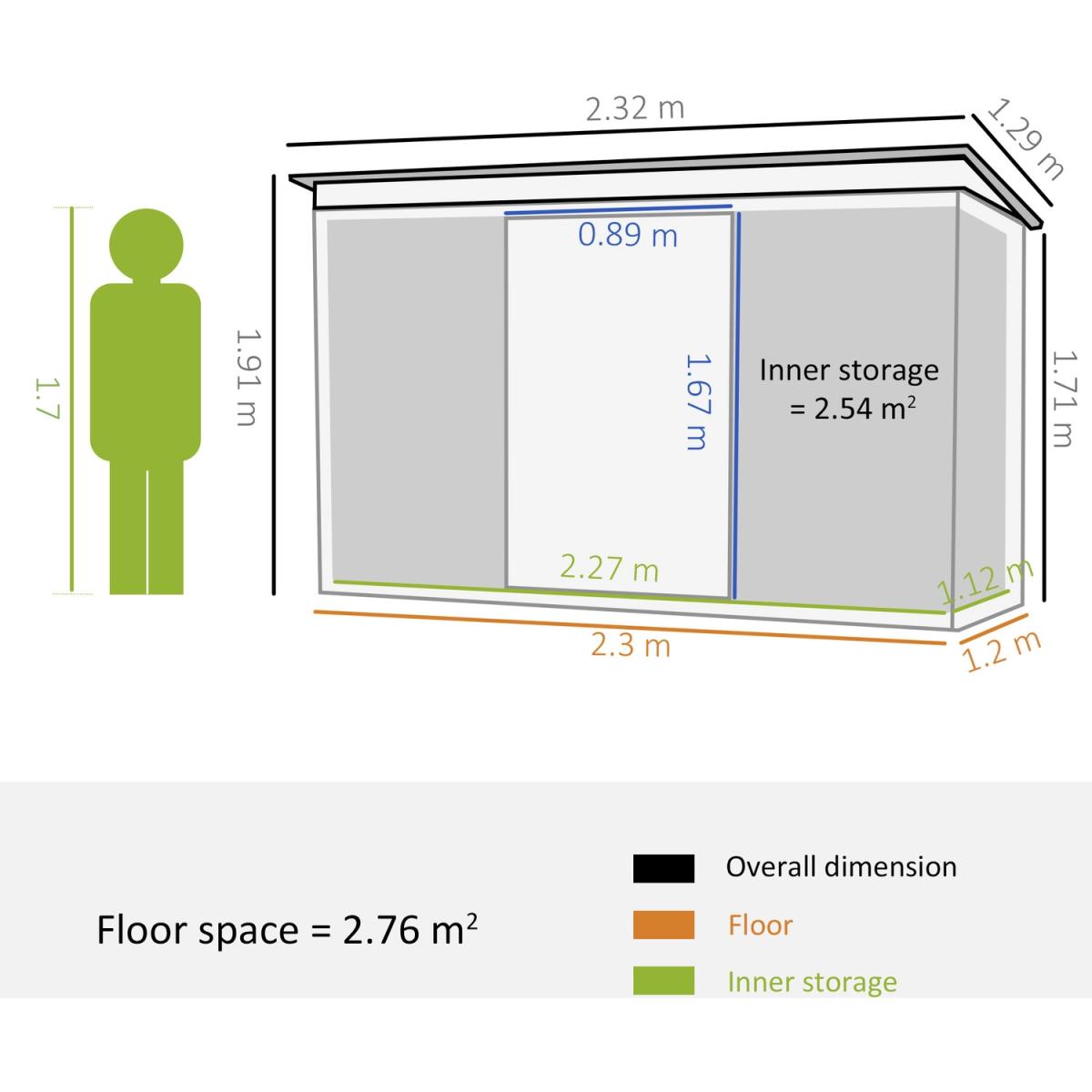 Transform your garden with this Outsunny storage shed. The roomy interior is ideal for storing large tools and equipment to keep your outdoors clean. Made from reinforced steel, the structure is rustproof, UV-resistant, sturdy and durable. It is fitted with a sliding double door for easy access, alongside two vents to keep inside dry and aerated. It's finished with a tilted roof and lock on the door.