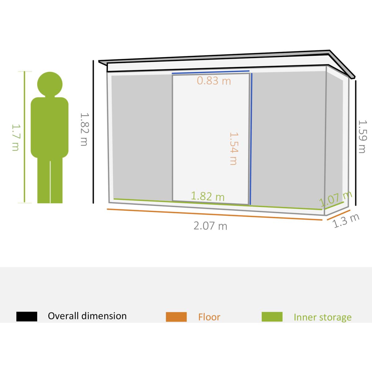 This Outsunny garden shed is a safe and protective way for keeping tools, equipment and outerwear stored. It's also spacious enough as a bike storage shed too - great for the outdoor adventurers. Made from corrugated steel, it's strong, fitted with a sloped shed to prevent rainwater building up. Two front vents and a window for air - keeps inside fresh as possible. A sliding door for easy access, shed comes complete with a floor foundation.