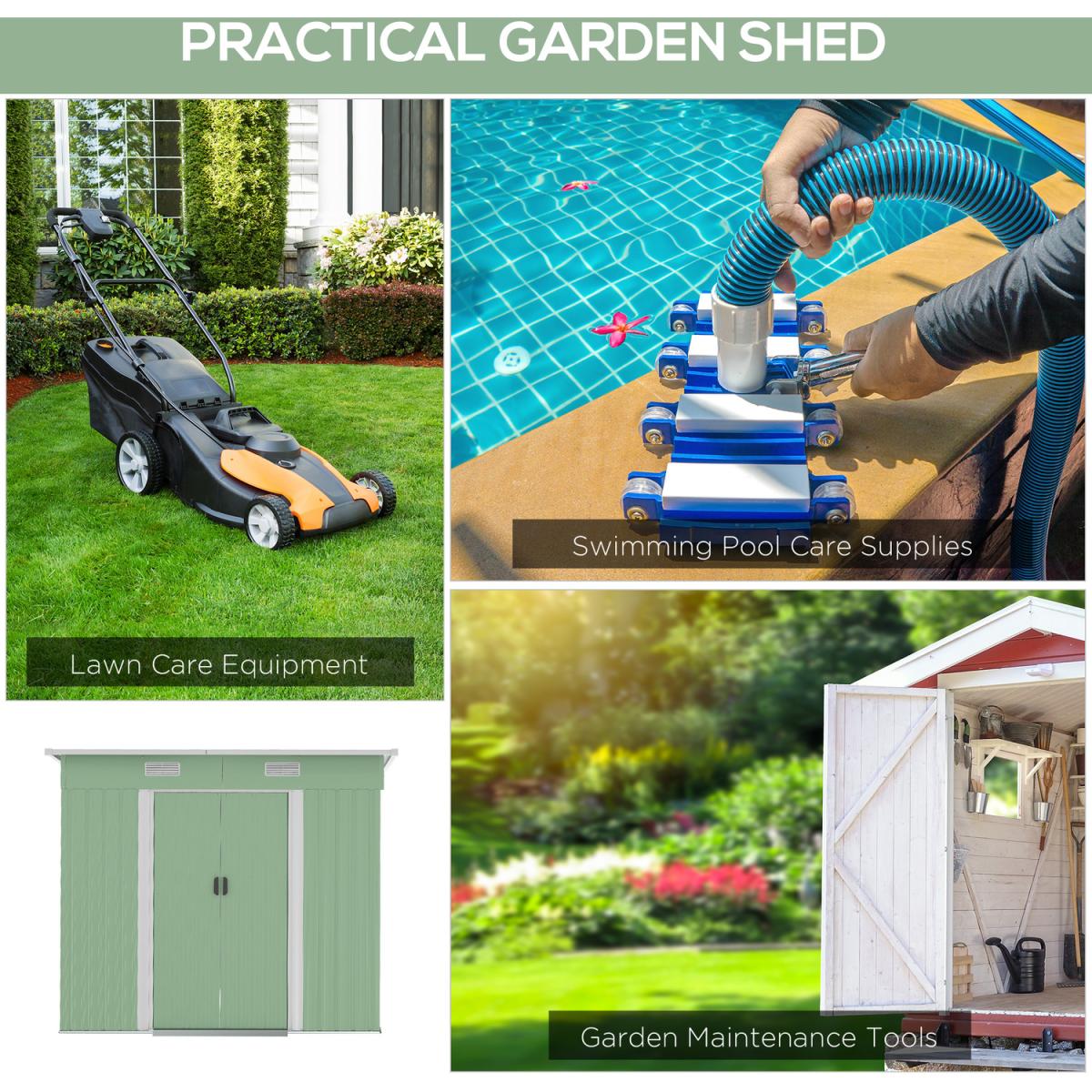 7 x 4ft Outdoor Garden Storage Shed, Tool Storage Box - Light Green