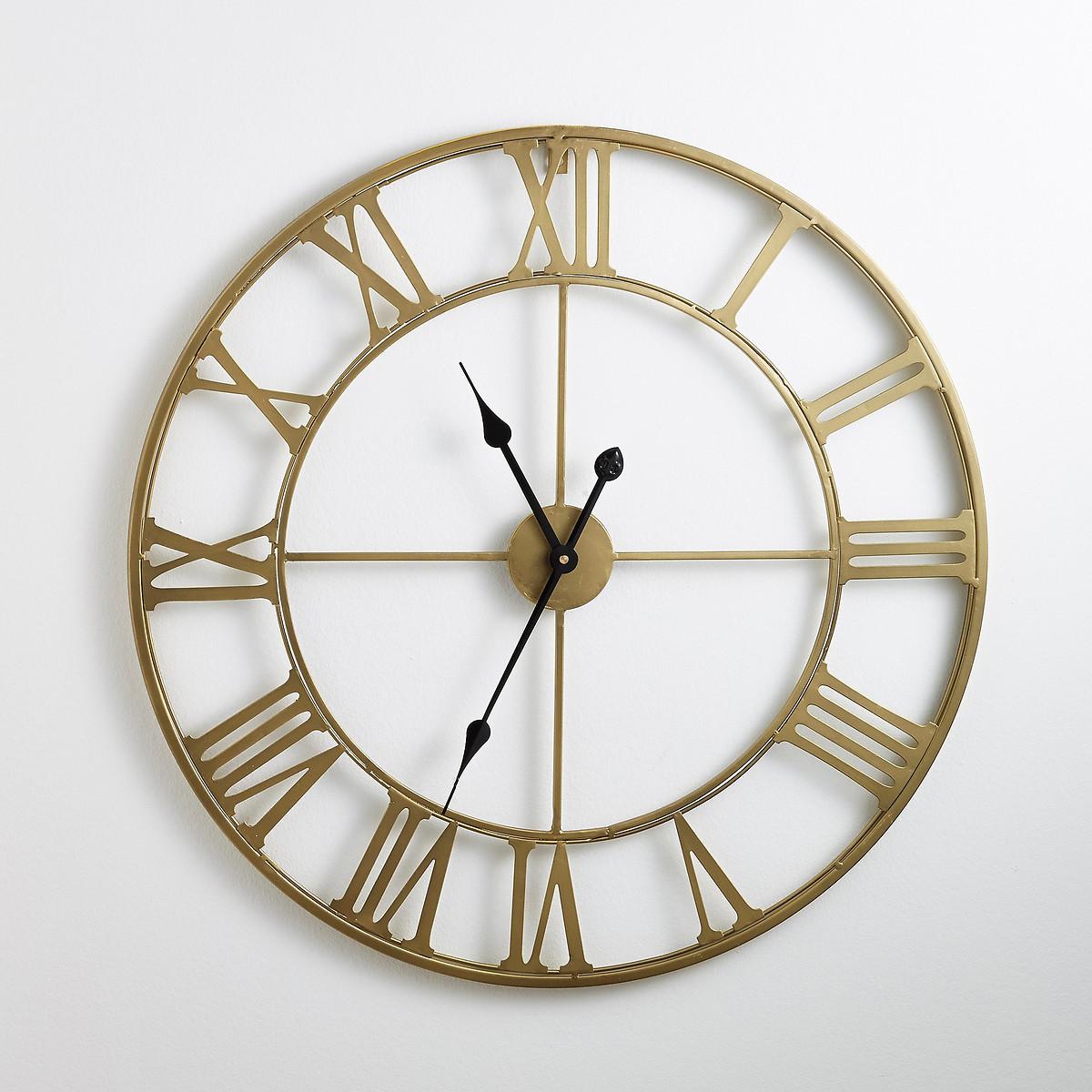 I love this clock for its striking brass finish and minimalist open design, which makes it a versatile piece for various interiors. It works particularly well in modern, industrial, or contemporary spaces where clean lines and metallic accents are key. To style it effectively, hang it above a neutral sofa or a statement sideboard to add a touch of sophistication without overwhelming the space. Practical tip: pair it with other brass or brass-toned accessories, like lamps or picture frames, for a cohesive look. Its 70cm diameter makes it a focal point, so ensure it's mounted at eye level for easy reading and maximum impact.