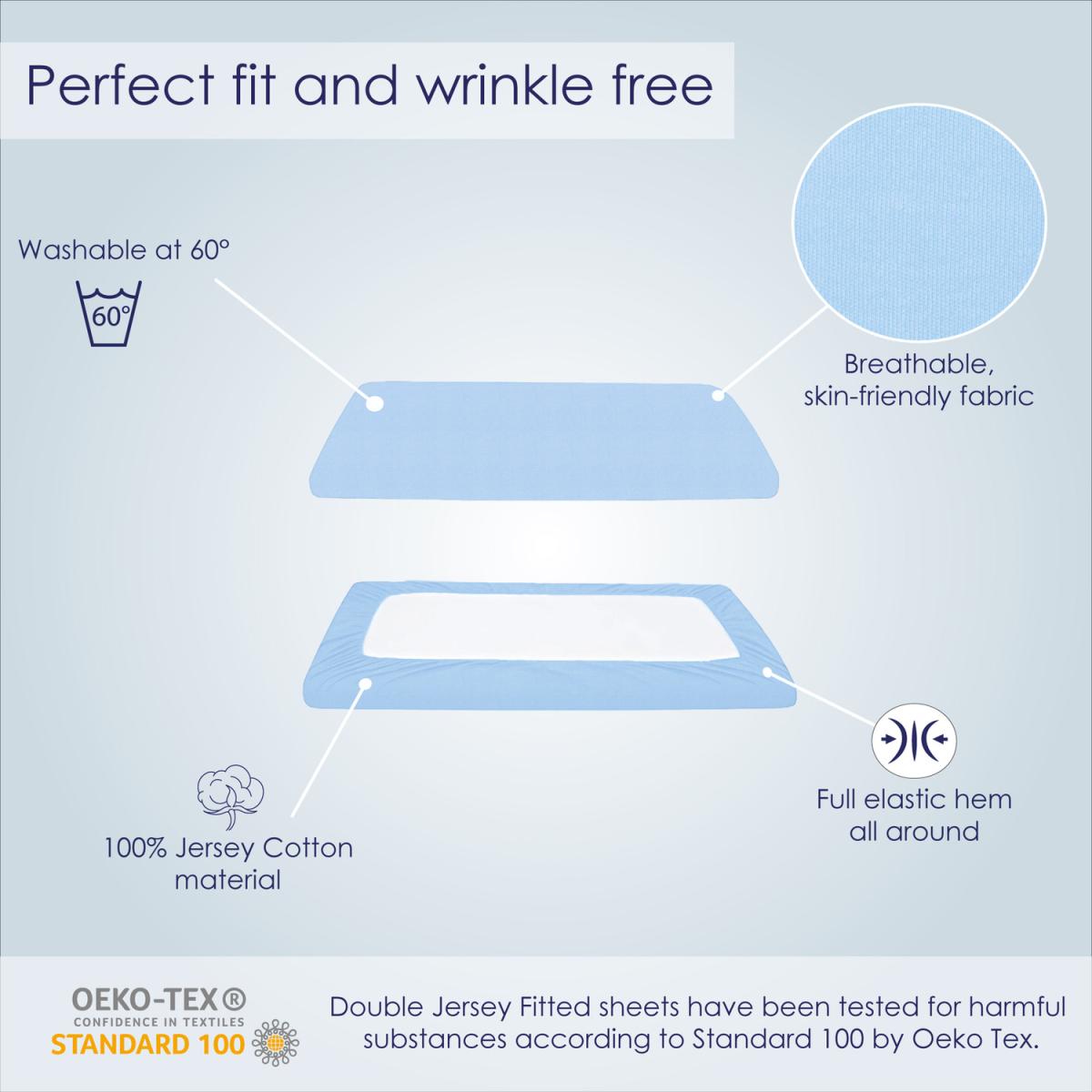 Babies spend most of their time in their cribs, so it is important to ensure top-quality fitted cot/crib sheets. Made from special soft, skin-friendly and breathable cotton, Double Jersey baby cot/crib sheets will make sure your baby feels comfortable and cosy.