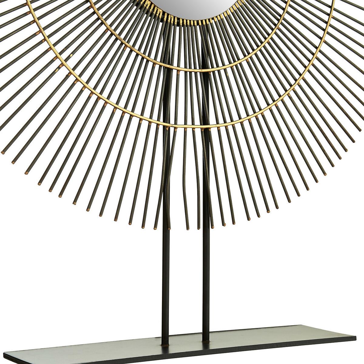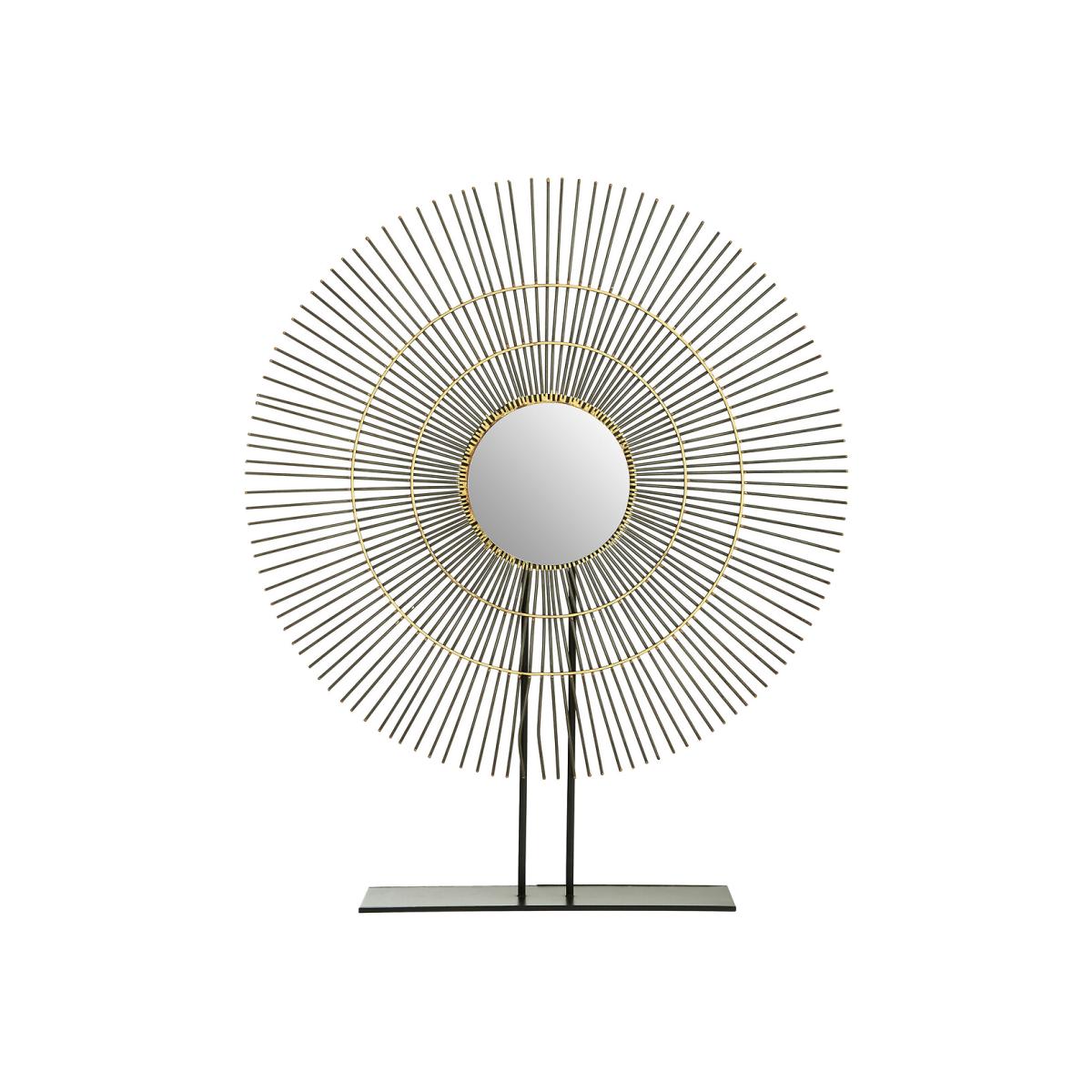 This product will be dispatched by one of our trusted suppliers. You’ll be contacted by their selected courier about your delivery. The Mirano sculpture has a small square base made from solid white marble. A pair of black iron poles are set into the marble to support the disc sculpture. The disc is comprised of a series of black iron rods, each one tipped with a contrasting gold finish. A pair of gold coloured circles create a subtle concentric effect.