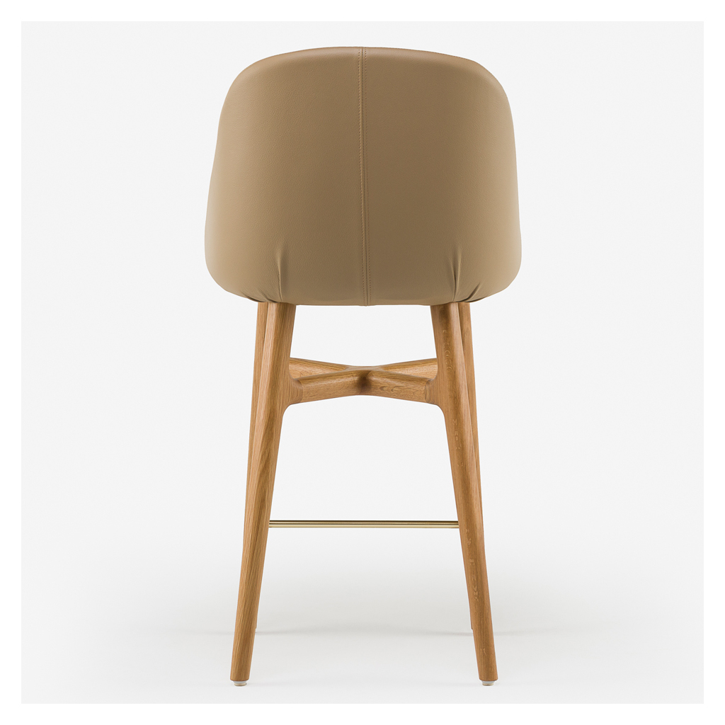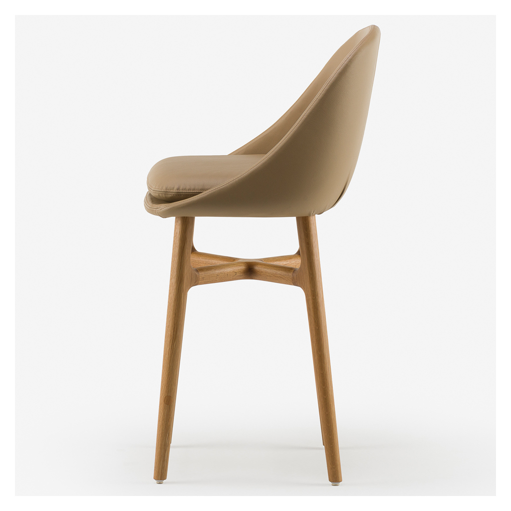 Designed by Shanghai-based design collective, neri & hu, the Solo bar stool focuses on the 'solo' sitter, encouraging comfort with the rounded 'hugging' seat shell that surrounds whoever should sit in it. The Solo bar stool offers a unique surround seat with elegantly splayed legs crafted from Danish oiled American white oak, creating a seating solution with contemporary style for your dining space. Complete with De La Espada's premium chai-hued leather upholstery, the material is a supple and hardwearing cowhide that is both water-resistant and beautifully soft. A harmonious union of premium leather and white oak wood, neri & hu's Solo bar stool offers the complete set of qualities needed for reviving a dining area or workspace.