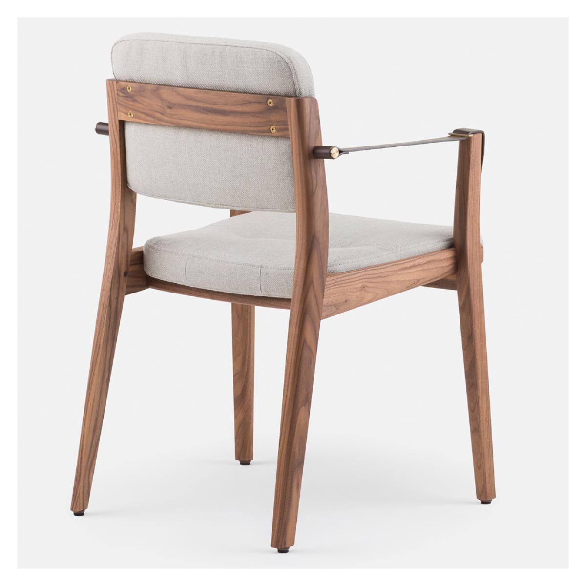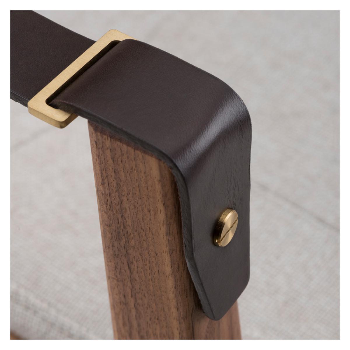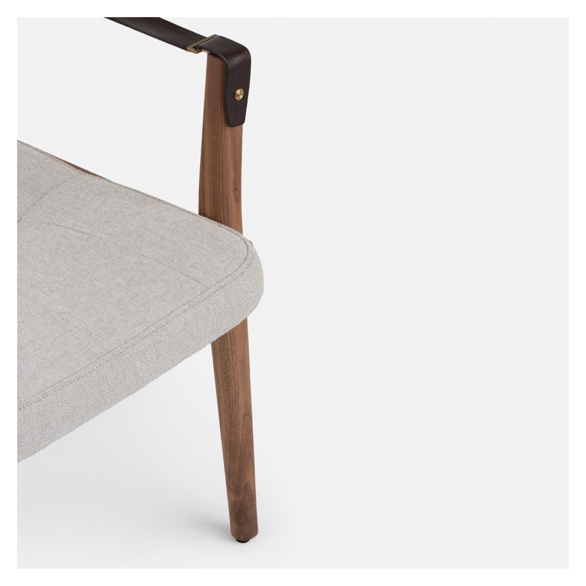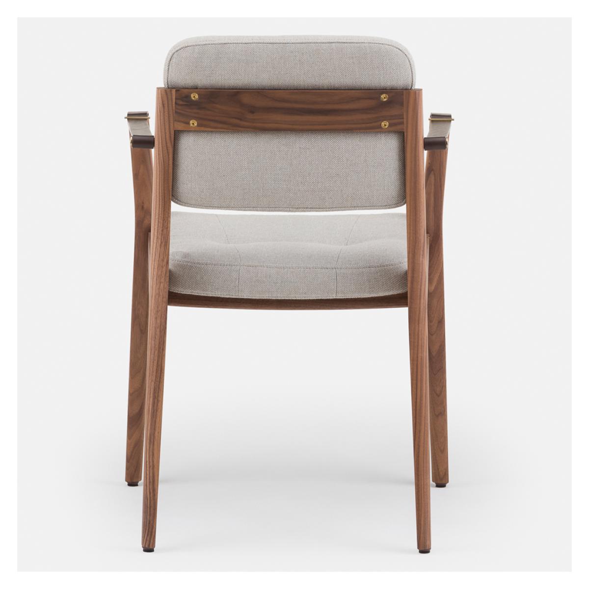 Initially designed for the prestigious Capo restaurant in Shanghai, the striking Capo Dining Armchair is crafted with a Danish-oiled black American walnut frame, designed by Shanghai-based neri & hu and manufactured to exacting standards in Portugal by De La Espada. Inspired by the old-world charm of the basilica, the Capo Dining Armchair is accented with brown leather strap arms and brass-coloured detailing, and combines tailoring details and heritage qualities, awarding the piece with a distinctive style that translates perfectly to the home setting. Upholstered in Sunniva 3 717 fabric, the Capo Dining Armchair has longevity and versatility, woven with two tones of wool in a blend that allows a flat weave for a perfectly hardwearing and comforting finish.