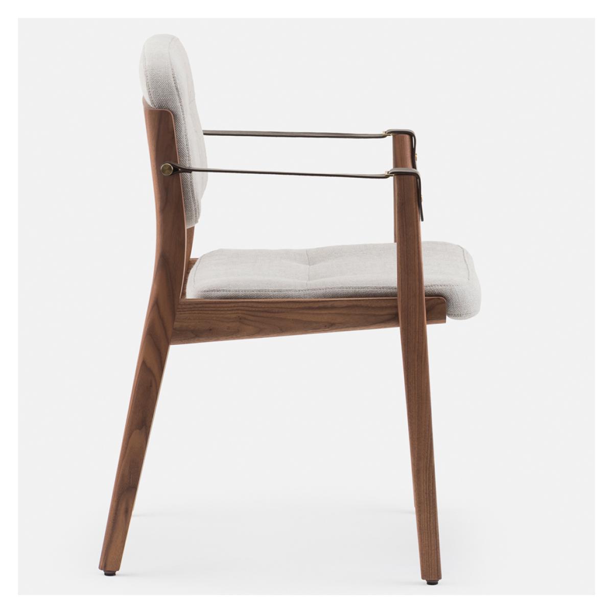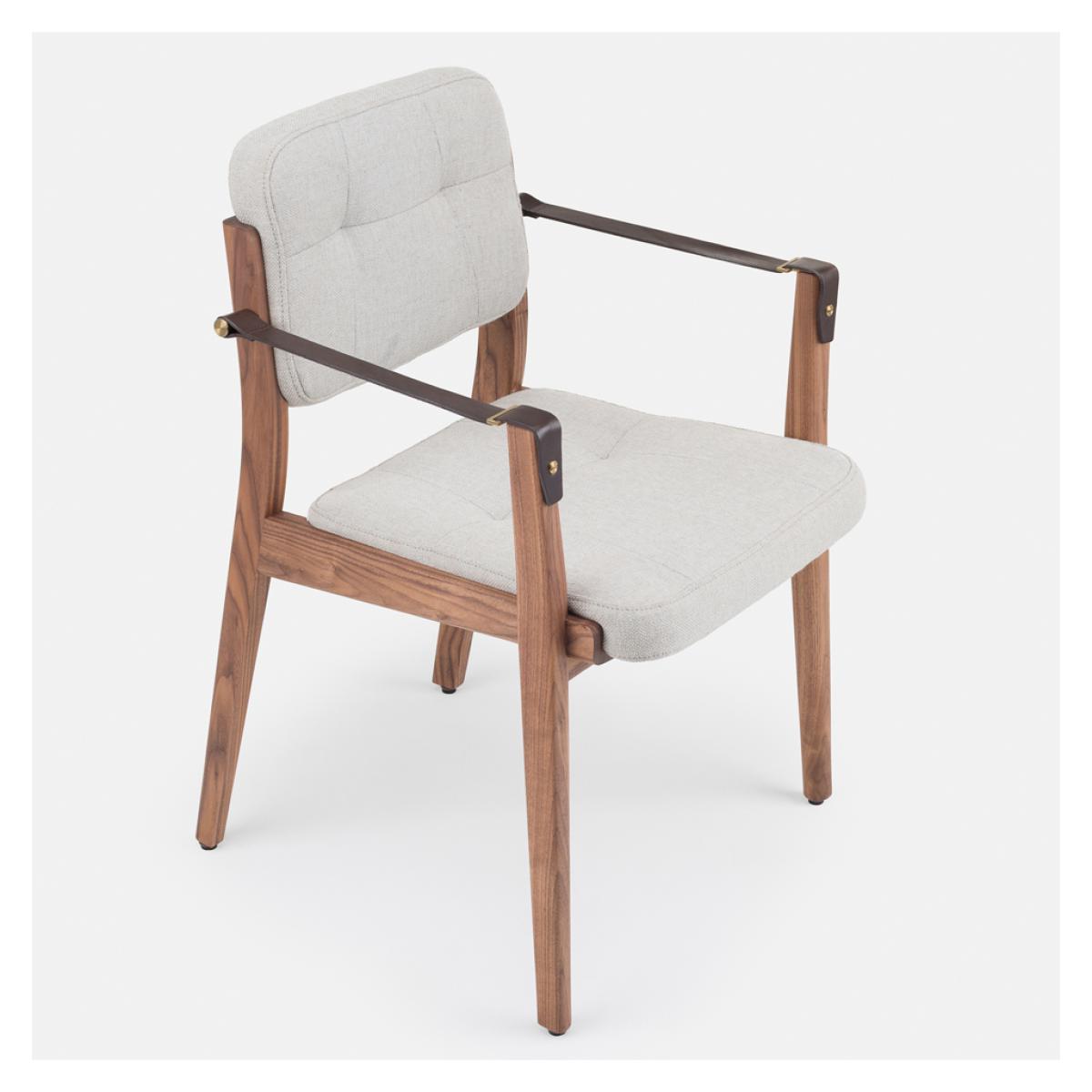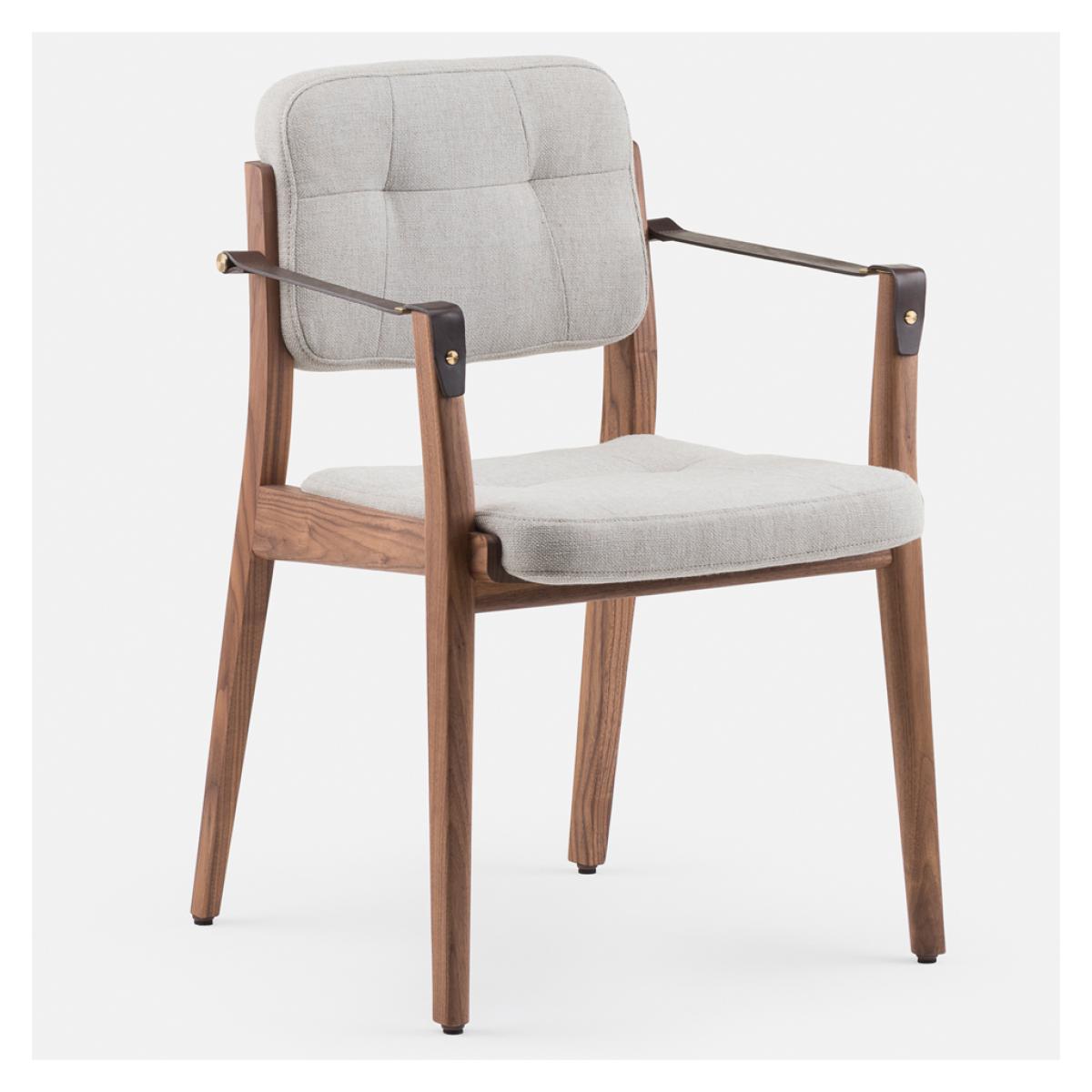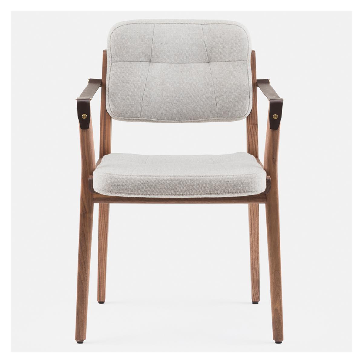 Initially designed for the prestigious Capo restaurant in Shanghai, the striking Capo Dining Armchair is crafted with a Danish-oiled black American walnut frame, designed by Shanghai-based neri & hu and manufactured to exacting standards in Portugal by De La Espada. Inspired by the old-world charm of the basilica, the Capo Dining Armchair is accented with brown leather strap arms and brass-coloured detailing, and combines tailoring details and heritage qualities, awarding the piece with a distinctive style that translates perfectly to the home setting. Upholstered in Sunniva 3 717 fabric, the Capo Dining Armchair has longevity and versatility, woven with two tones of wool in a blend that allows a flat weave for a perfectly hardwearing and comforting finish.