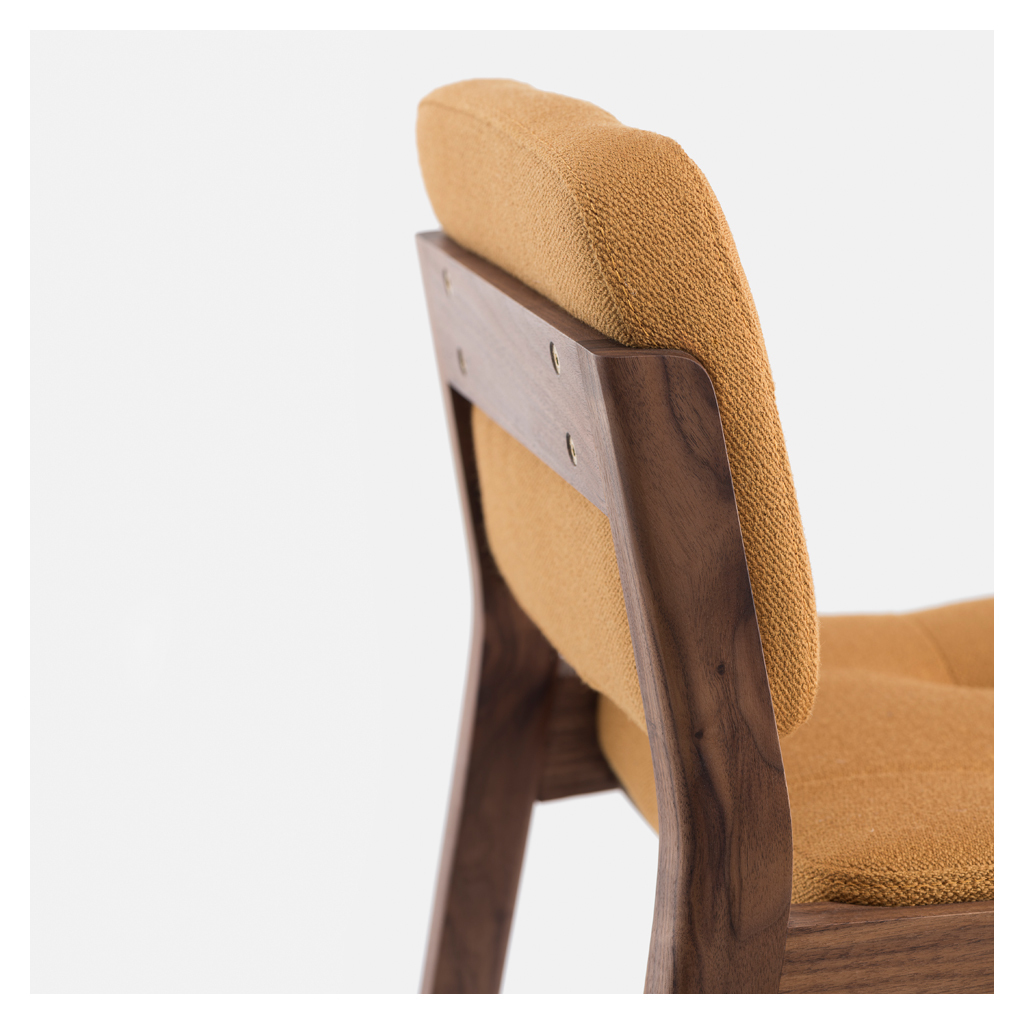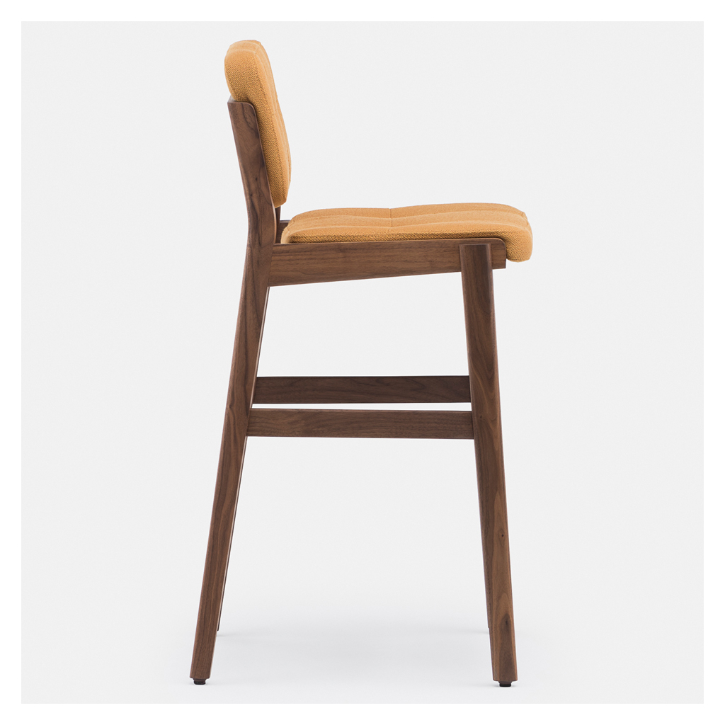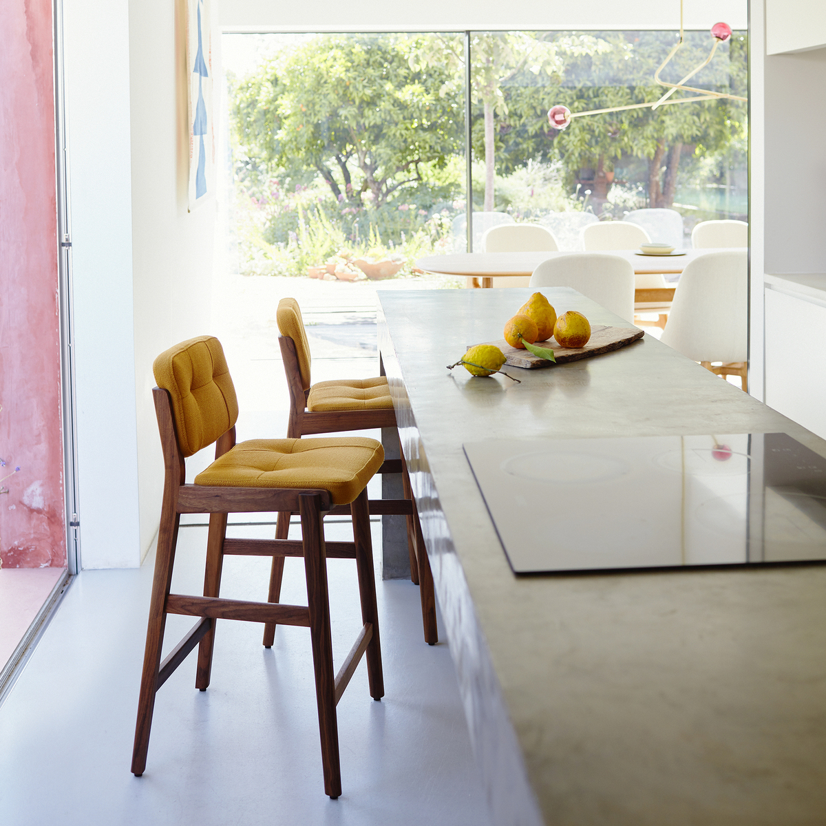 Initially designed for the prestigious Capo restaurant in Shanghai, the striking Capo Bar Stool is crafted with an oiled American black walnut frame, designed by Shanghai-based neri & hu and manufactured to exacting standards in Portugal by De La Espada. Inspired by the old-world charm of the basilica, the Capo Bar Stool combines tailoring details and heritage qualities, awarding the piece a distinctive style that translates perfectly to the home setting. Available in a selection of colours, the Capo Bar Stool is upholstered with premium Vidar 2 472 fabric, designed by Raf Simons and Fanny Aronsen and composed of 94% new wool for a large-grained texture and great depth.