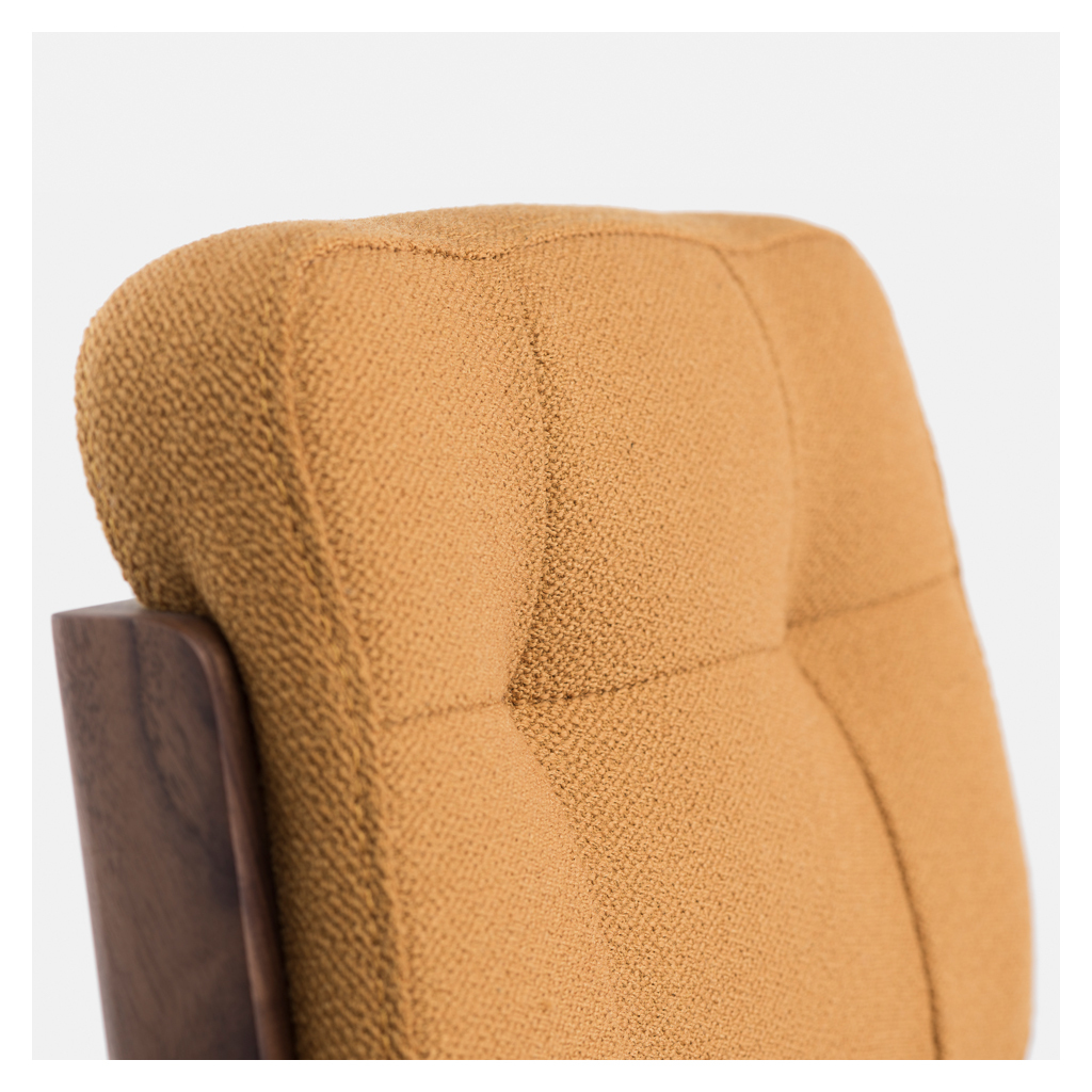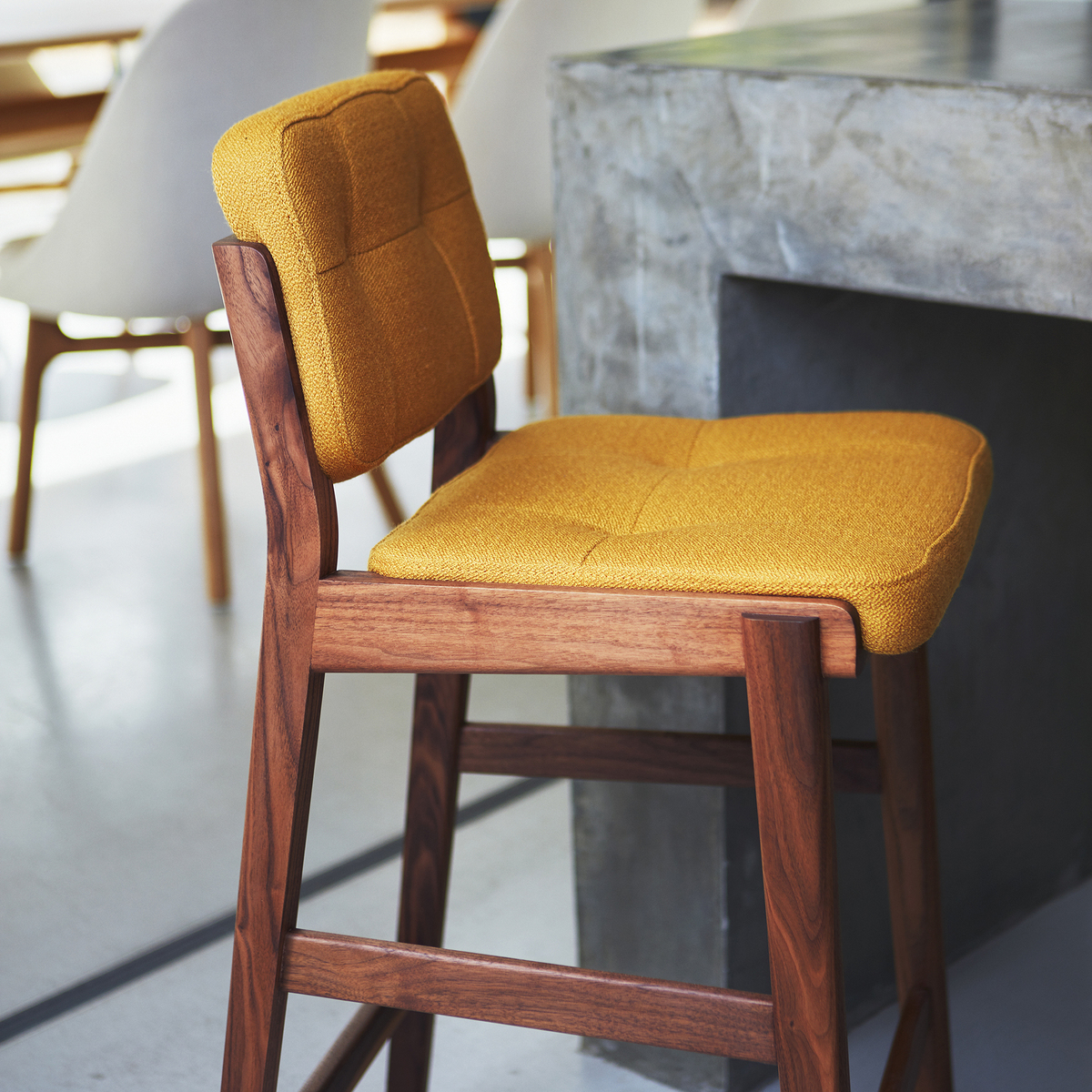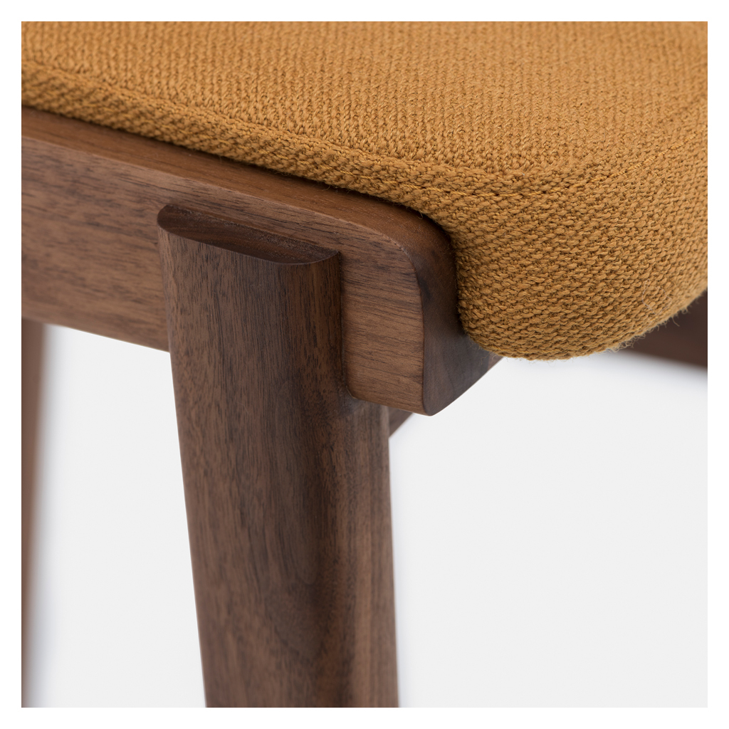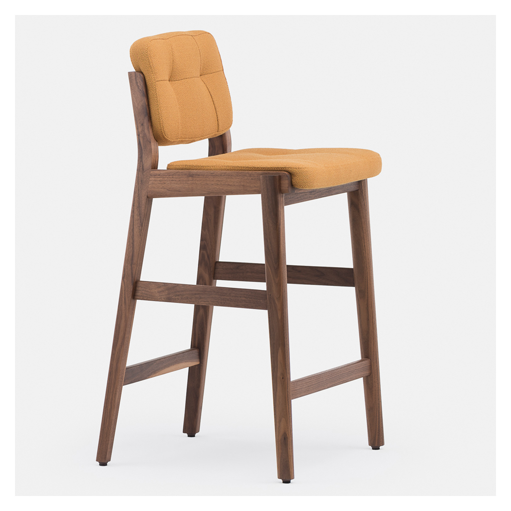 Initially designed for the prestigious Capo restaurant in Shanghai, the striking Capo Bar Stool is crafted with an oiled American black walnut frame, designed by Shanghai-based neri & hu and manufactured to exacting standards in Portugal by De La Espada. Inspired by the old-world charm of the basilica, the Capo Bar Stool combines tailoring details and heritage qualities, awarding the piece a distinctive style that translates perfectly to the home setting. Available in a selection of colours, the Capo Bar Stool is upholstered with premium Vidar 2 472 fabric, designed by Raf Simons and Fanny Aronsen and composed of 94% new wool for a large-grained texture and great depth.