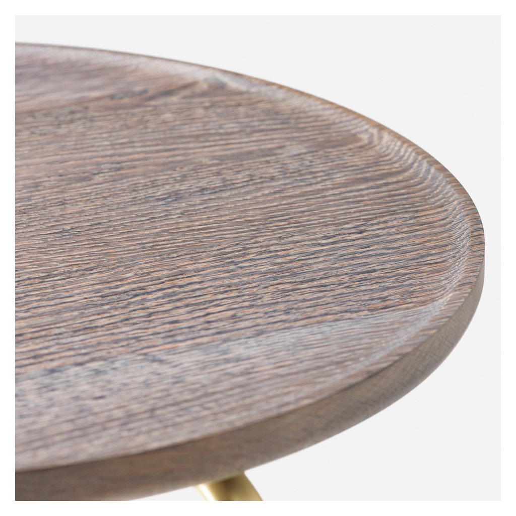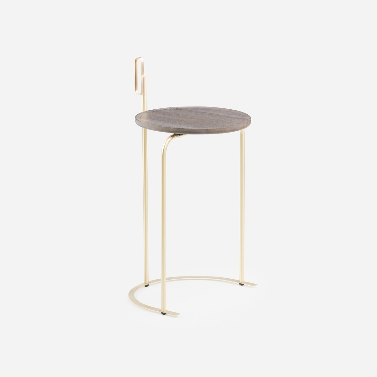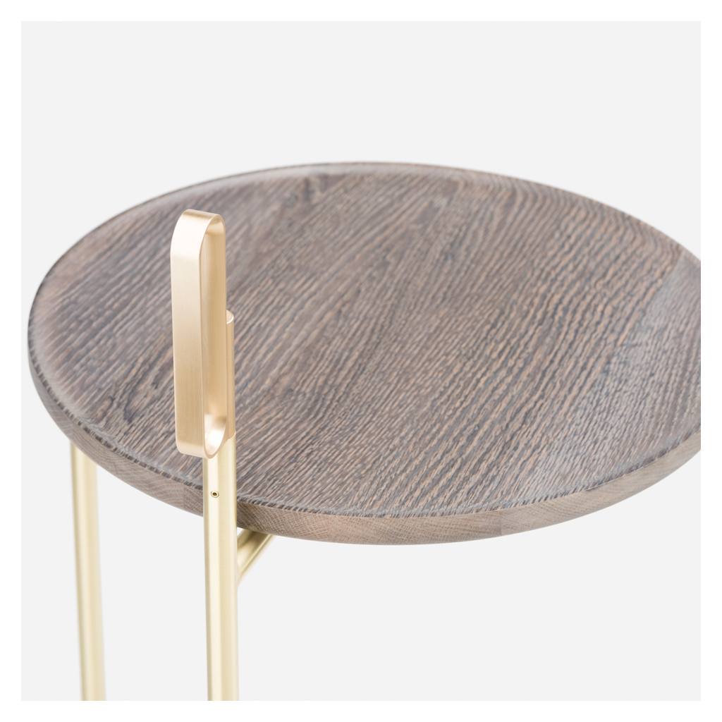 Expertly designed by award-winning Shanghai-based design collaborative, neri & hu, the 790 Handle Side Table in brass and oxidised oak is versatile furniture, reimagined. Crafted by De La Espada, the side table features a lightweight brass frame with a looped handle-like form that gives it a unique aesthetic. Finished with an oxidised oak circular table top, this portable table would make the perfect small working desk by a sofa or as a small side table for a lounge chair. Award-winning design duo neri & hu reinterprets classic furniture forms from different periods over design history, configuring beautiful materials into minimalist, contemporary pieces that make the perfect enhancement to modern spaces.