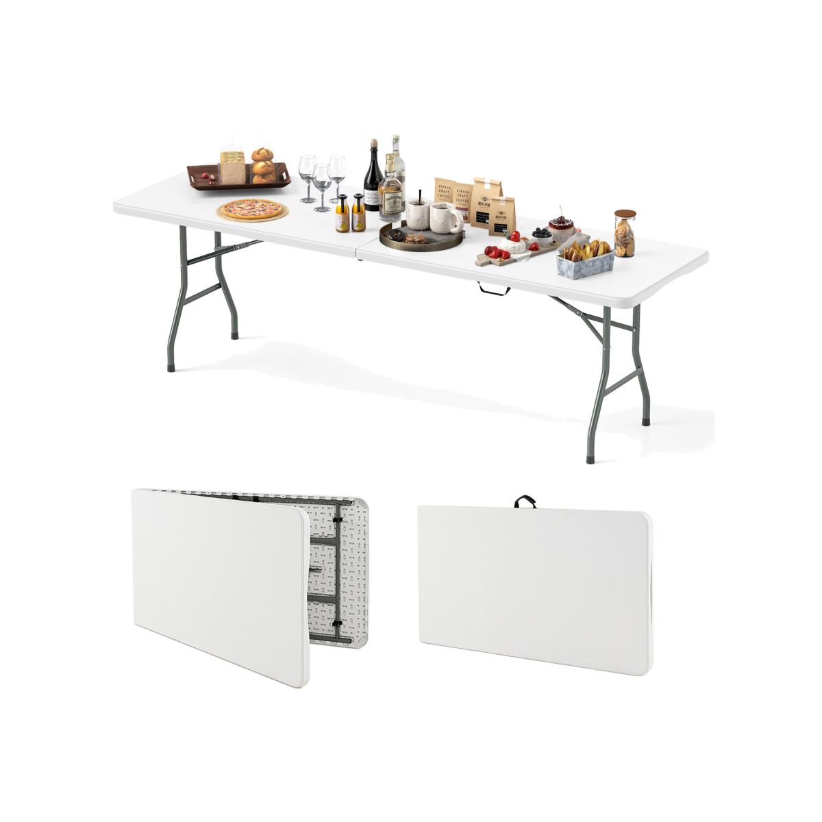 Experience outdoor dining at its best with this spacious folding table. Made from premium HDPE material, the 4 cm thickened tabletop withstands long-time outdoor use. Measuring 180/245 x 74 cm, the table is perfect for family or friend gatherings. Moreover, the table is supported by heavy-duty metal legs, ensuring stability and 180 kg load capacity. For easy storage and transport, it folds securely with safety locks. The versatility extends from picnics to kitchen use, making it an ideal addition to any setting. Enhance your outdoor gatherings with this reliable folding table, designed for convenience and longevity.