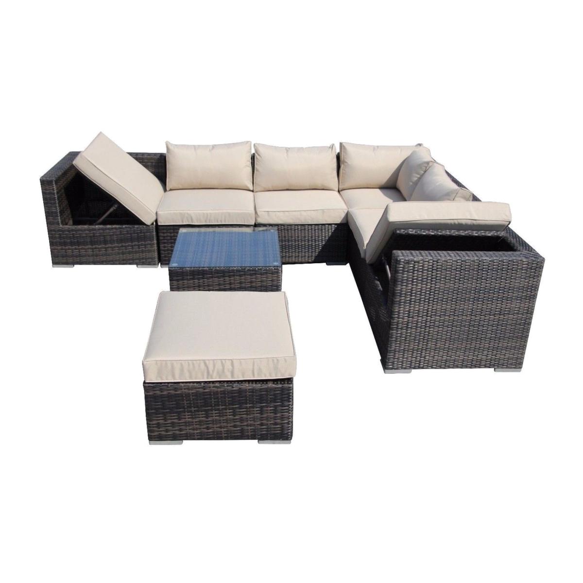 8 Piece Garden Furniture Corner Sofa Patio Modular Set - Mix Brown