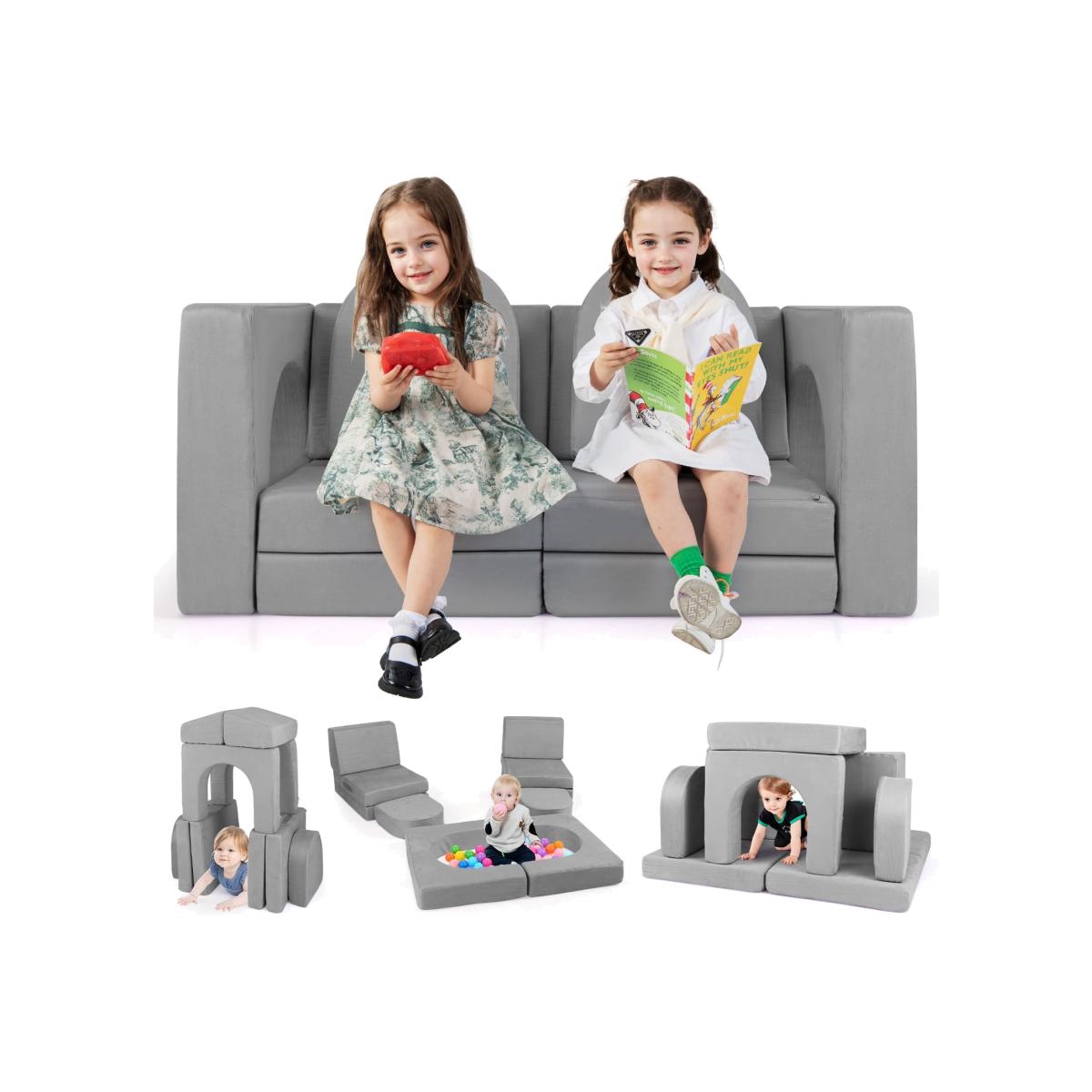 Let your little one experience different playing options with our modular kids play couch! It has 8 blocks to build a cozy sofa, lounge, or bed for kids to unwind. Additionally, it can also be combined into a tunnel, fort, or ball pit, meeting kid's different playing needs. During playtime, it will improve kid's creativity, imagination, as well as cognitive ability. Made with wear-resistant suede fabric and elastic sponge, the foam block activity playset is comfortable for kids to sit, crawl, climb, or play.