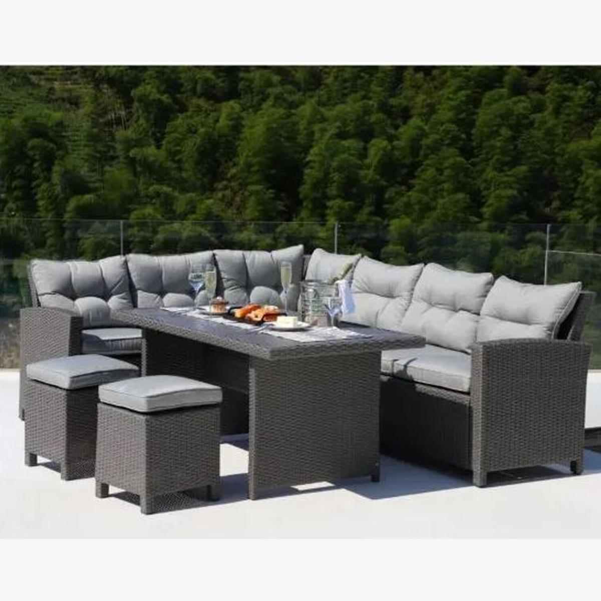 Introducing the Grey Wicker 8 Seater Garden Set, a stylish and functional addition to any outdoor space. Crafted with high-quality grey wicker, this garden set exudes a contemporary charm that effortlessly blends with various decor styles. The set includes a spacious rectangular dining table and eight comfortable chairs, providing ample seating for family gatherings or outdoor entertaining. The durable wicker material is weather-resistant, ensuring that this garden set can withstand the elements and maintain its pristine appearance for years to come. The chairs are manufactured with ergonomic design and plush cushions, offering optimal comfort during extended periods of use. The table adds a touch of elegance while providing a smooth and easy-to-clean surface for dining or hosting outdoor events. With its generous seating capacity, the Grey Wicker 8 Seater Garden Set is perfect for hosting barbecues, garden parties, or simply enjoying a meal with loved ones in the fresh air. The neutral grey colour palette effortlessly complements any outdoor setting, making it a versatile choice for both contemporary and traditional gardens. Enhance your outdoor living space with this stylish and practical garden set, and create a welcoming environment for relaxation and socializing.