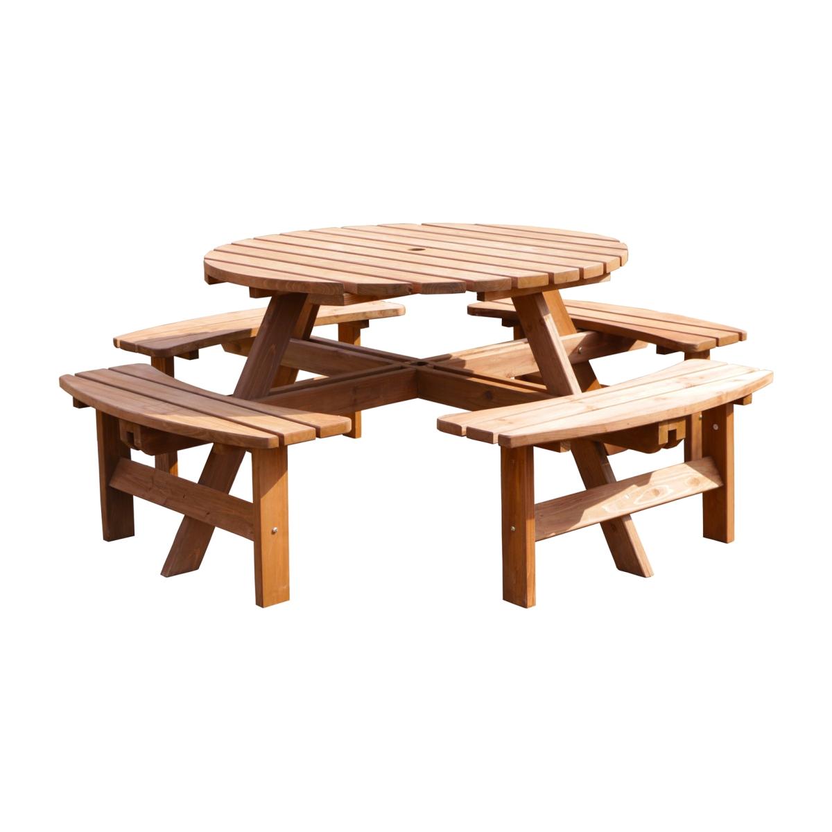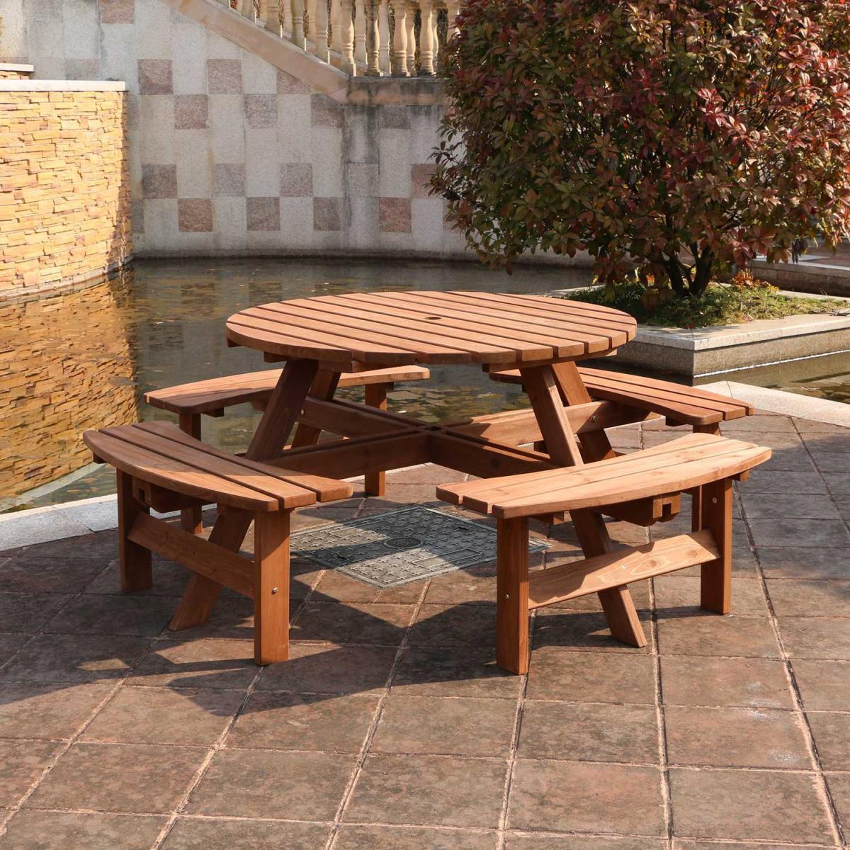 8 Seater Wooden Round Pub Bench - Brown