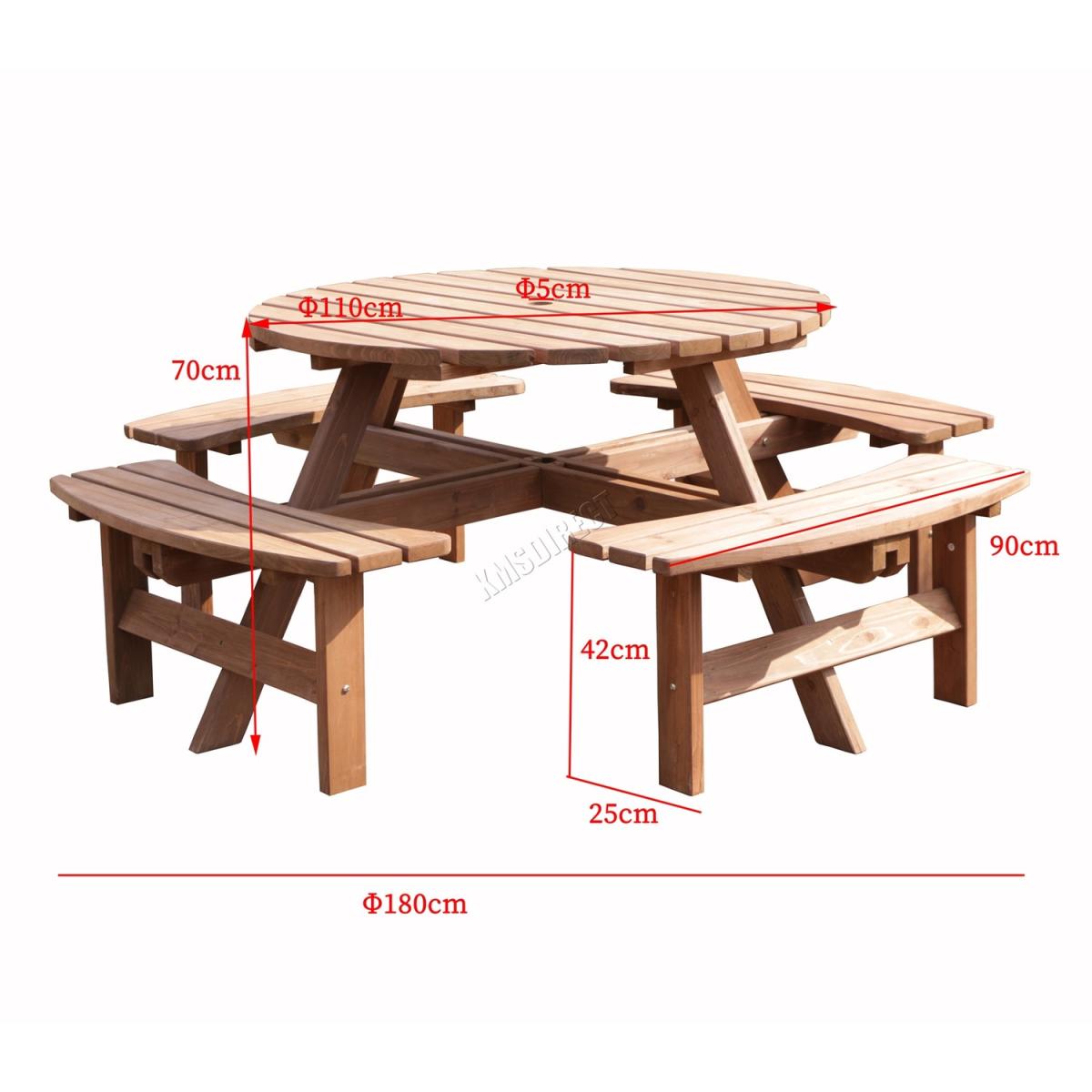 This wooden round bench is not only charming but also resilient. It is large enough for 8 adults to sit comfortably and is designed to stand up to the rigours of outdoor use, as well as being a great value example of quality garden furniture. Ideal For gardens, patio, terrace, home, picnic etc.
