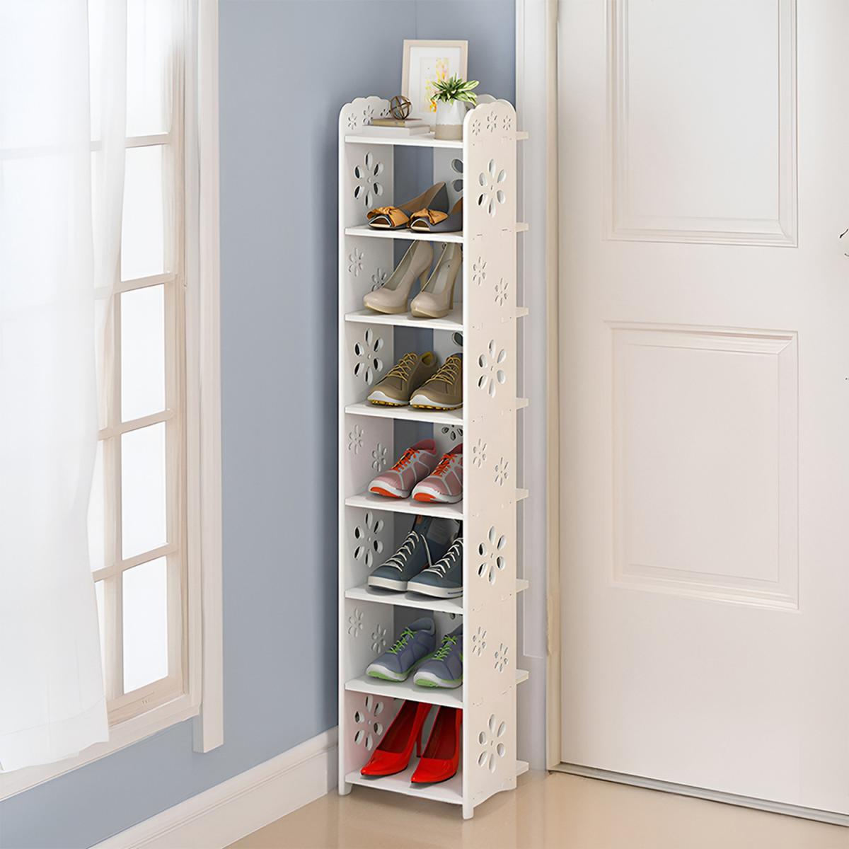 8-Tier Shoe Storage Open Shoes Rack for Entryway offers a compact solution for footwear in limited spaces. With eight evenly spaced tiers, it keeps your daily shoes easily accessible. Made from durable plastic, this sturdy rack fits perfectly in tight doorways, helping you maximize storage while keeping your space tidy.