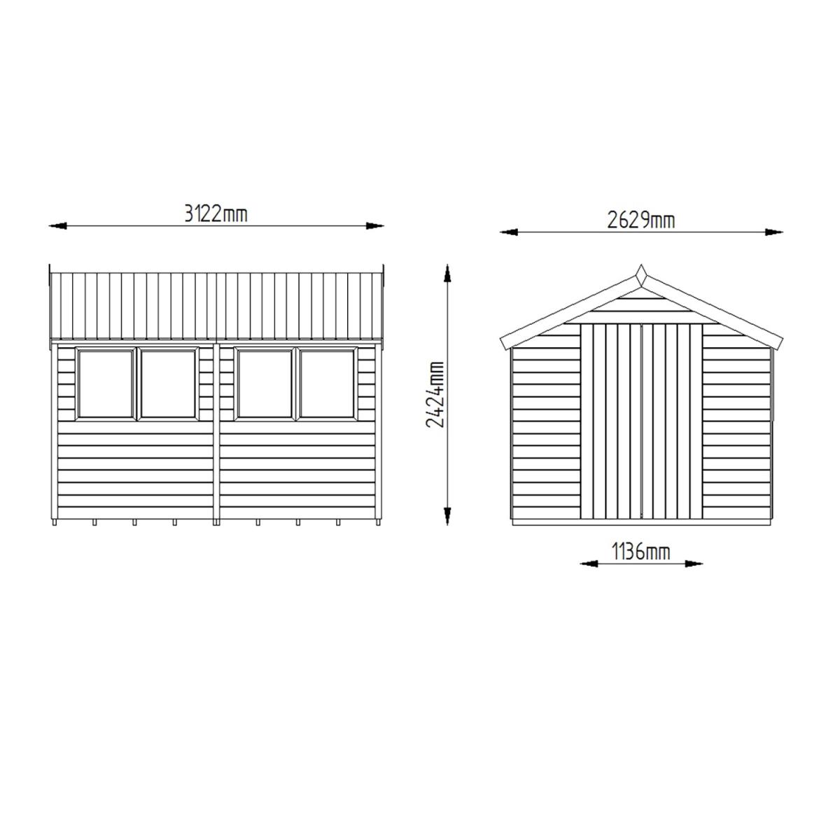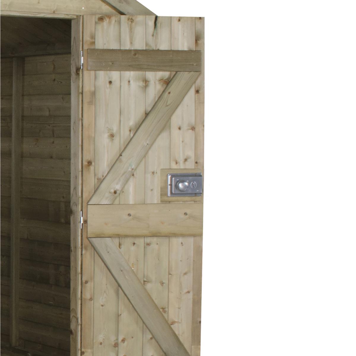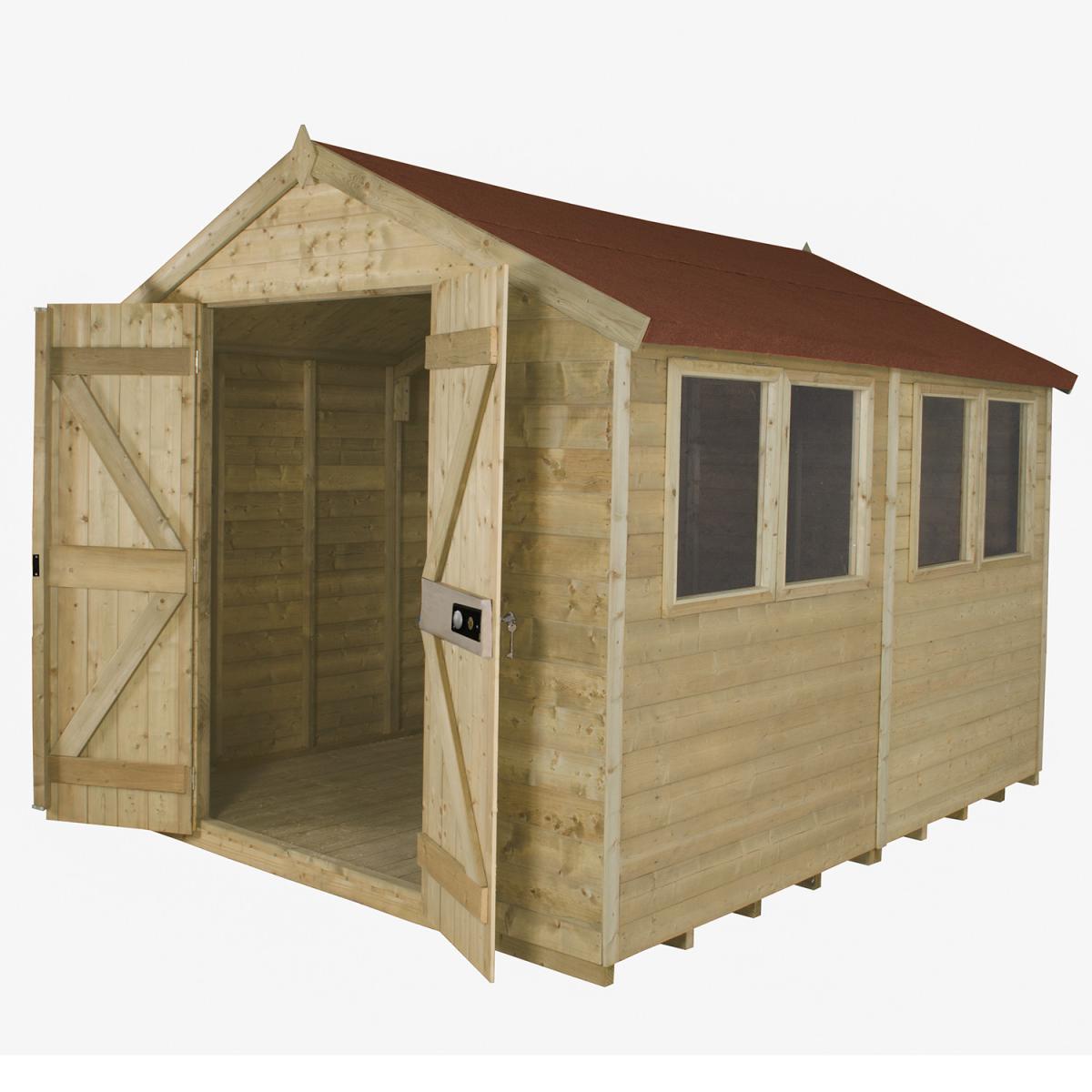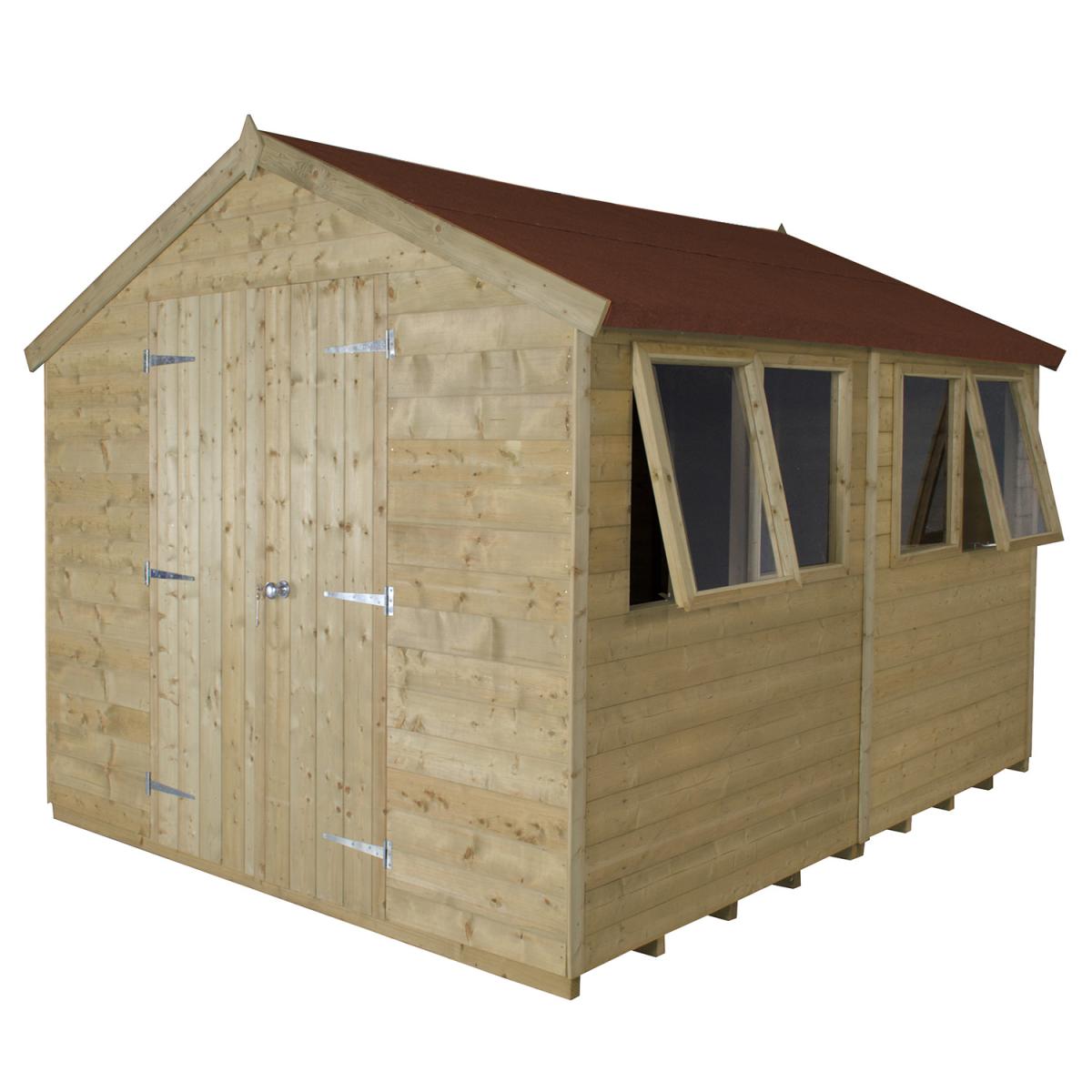 Whether wanting to create your own workshop or simply looking for some extra outdoor storage space, this Tongue and Groove Pressure Treated Double Door Apex Shed Frame will be a great addition to your garden. This premium quality shed has a sturdy and smart tongue and groove construction throughout, including the robust floor and roof. The roof also features a high quality red mineral felt for extra protection from the elements. The strong, fully braced door is fitted with rim-lock fastening for added security, while opening acrylic windows with quality stainless steel catches can provide ventilation if required. The shed has been pressure treated to eliminate the need for annual re-treatment and is guaranteed against rot for 15 years, so you can enjoy this excellent shed year after year.