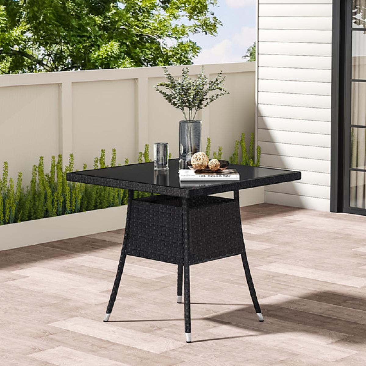 80CM Rattan Tempered Glass Garden Coffee Table - Brown - Black / Black Square Table, 80*80*72cm