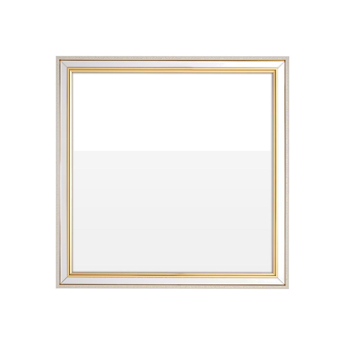 This product will be dispatched by one of our trusted suppliers. This boutique hotel style mirror's frame is comprised of a trio of layers which combine to tasteful effect. Reflective glass occupies the centre, with bevelled edges that create depth. A slimmer gold coloured layer runs adjacent to the square mirror, again with bevelled edges, while the outer section is finished in white and embellished with gold coloured motifs. Product Dimensions:W80 x H80 cm