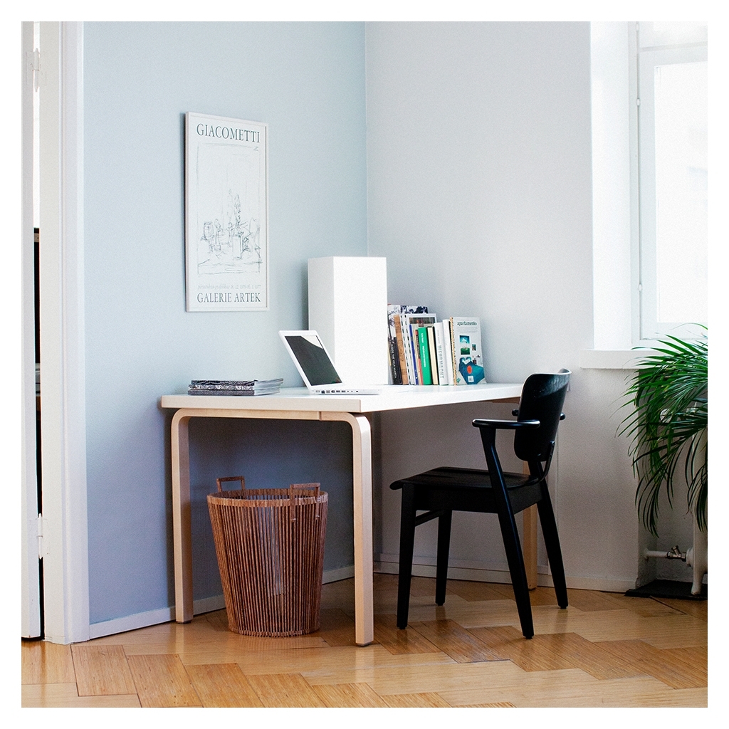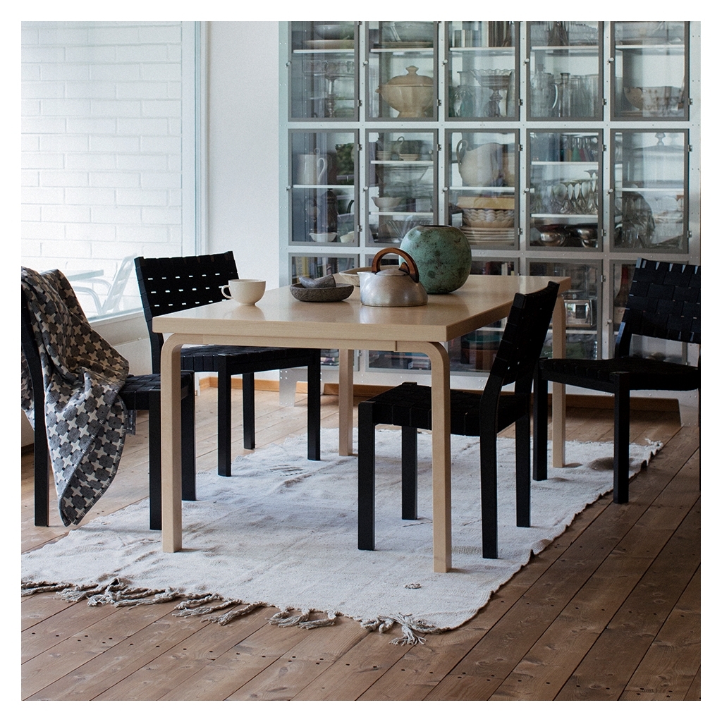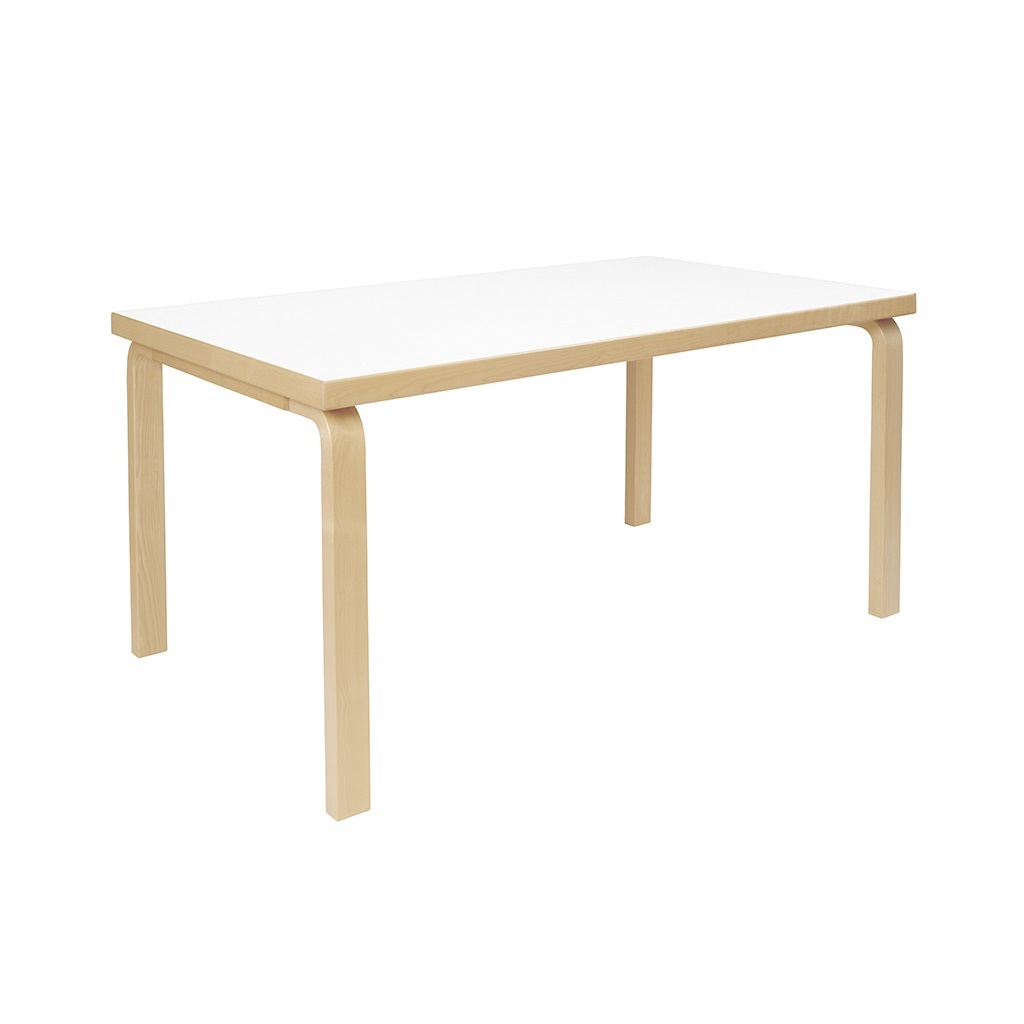 Originally designed by Alvar Aalto in 1935 for Artek, the birch Dining Table 82 A is a timeless design that would complement any dining area. Marrying beauty with exceptional craftmanship, the table is crafted in Finland from solid Finnish birch wood. Available with a natural birch, black linoleum or white laminate table top, the elegant table top rests on Aalto's signature L-legs. Created by bending a piece of birch to a curved 90° angle, the L-leg can be fastened directly to the table top, eliminating the need for complicated framework or support and creating Aalto's signature streamlined and simple aesthetic. Alvar Aalto was one of the founding members of Finnish manufacturer, Artek, and embraced strong individuality with focus on designing predominantly for humanity, creating functional and dynamic pieces for public and personal spaces alike.