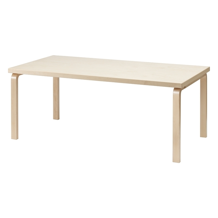 Originally designed by Alvar Aalto in 1935 for Artek, the birch Dining Table 83 is a timeless design that would complement any dining area. Marrying beauty with exceptional craftmanship, the table is crafted in Finland from solid Finnish birch wood. Available with a natural birch veneer, black linoleum or white laminate table top, the elegant table top rests on Aalto's signature L-legs. Created by bending a piece of birch to a curved 90° angle, the L-leg can be fastened directly to the table top, eliminating the need for complicated framework or support and creating Aalto's signature streamlined and simple aesthetic. Alvar Aalto was one of the founding members of Finnish manufacturer, Artek, and embraced strong individuality with focus on designing predominantly for humanity, creating functional and dynamic pieces for public and personal spaces alike.