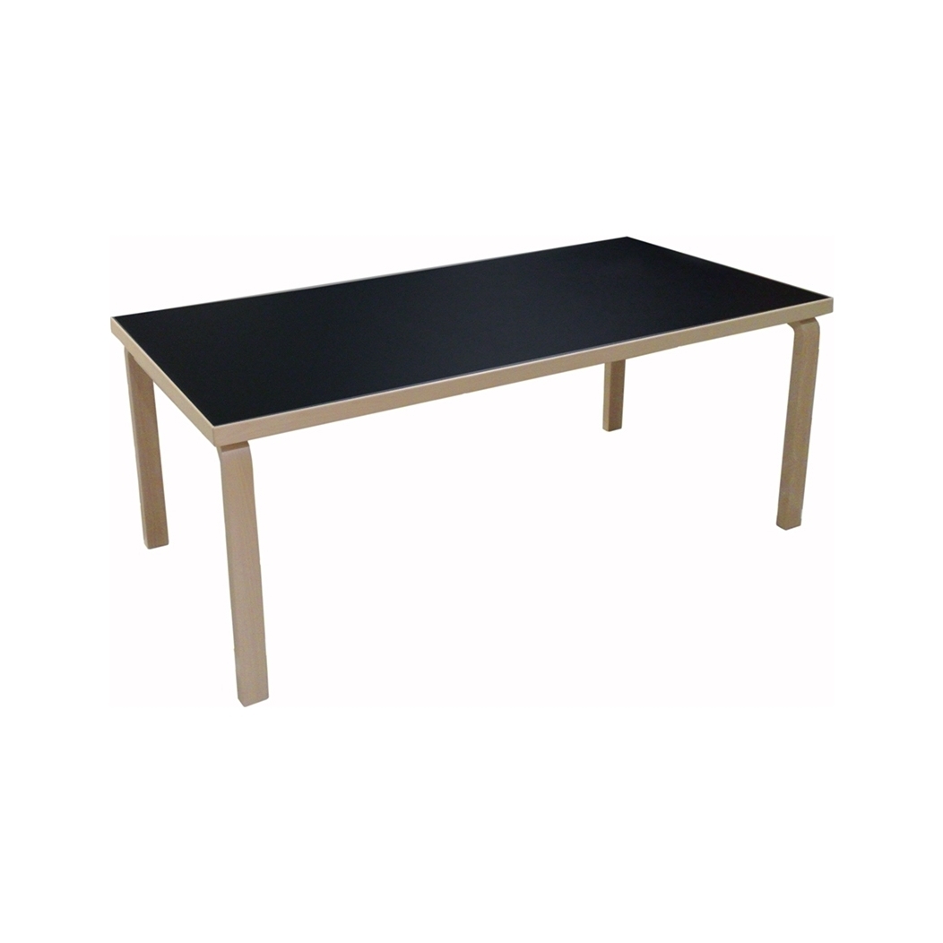 Originally designed by Alvar Aalto in 1935 for Artek, the birch Dining Table 83 is a timeless design that would complement any dining area. Marrying beauty with exceptional craftmanship, the table is crafted in Finland from solid Finnish birch wood. Available with a natural birch veneer, black linoleum or white laminate table top, the elegant table top rests on Aalto's signature L-legs. Created by bending a piece of birch to a curved 90° angle, the L-leg can be fastened directly to the table top, eliminating the need for complicated framework or support and creating Aalto's signature streamlined and simple aesthetic. Alvar Aalto was one of the founding members of Finnish manufacturer, Artek, and embraced strong individuality with focus on designing predominantly for humanity, creating functional and dynamic pieces for public and personal spaces alike.